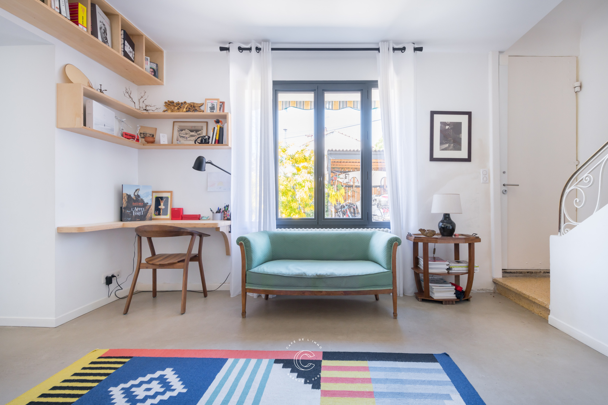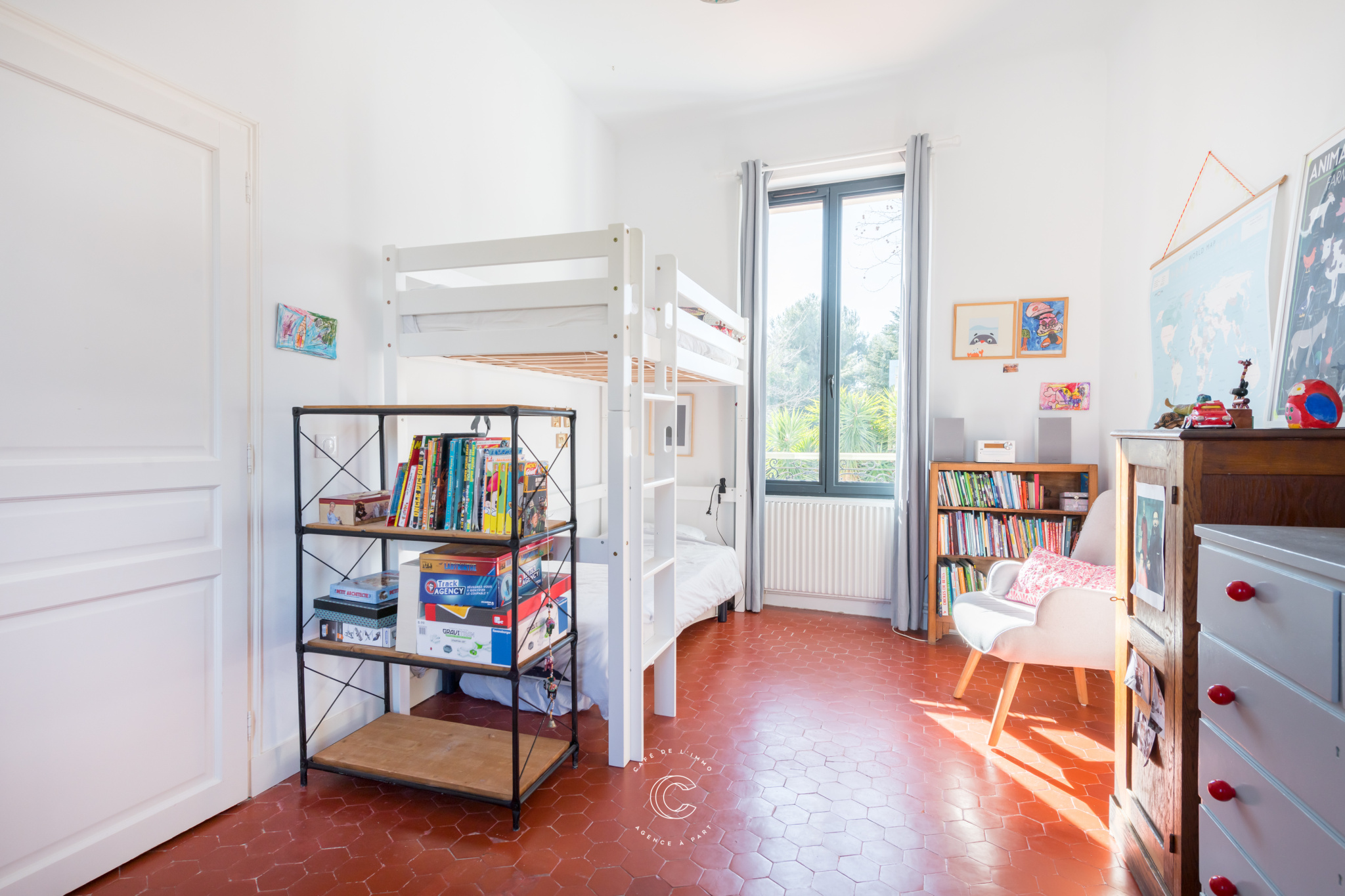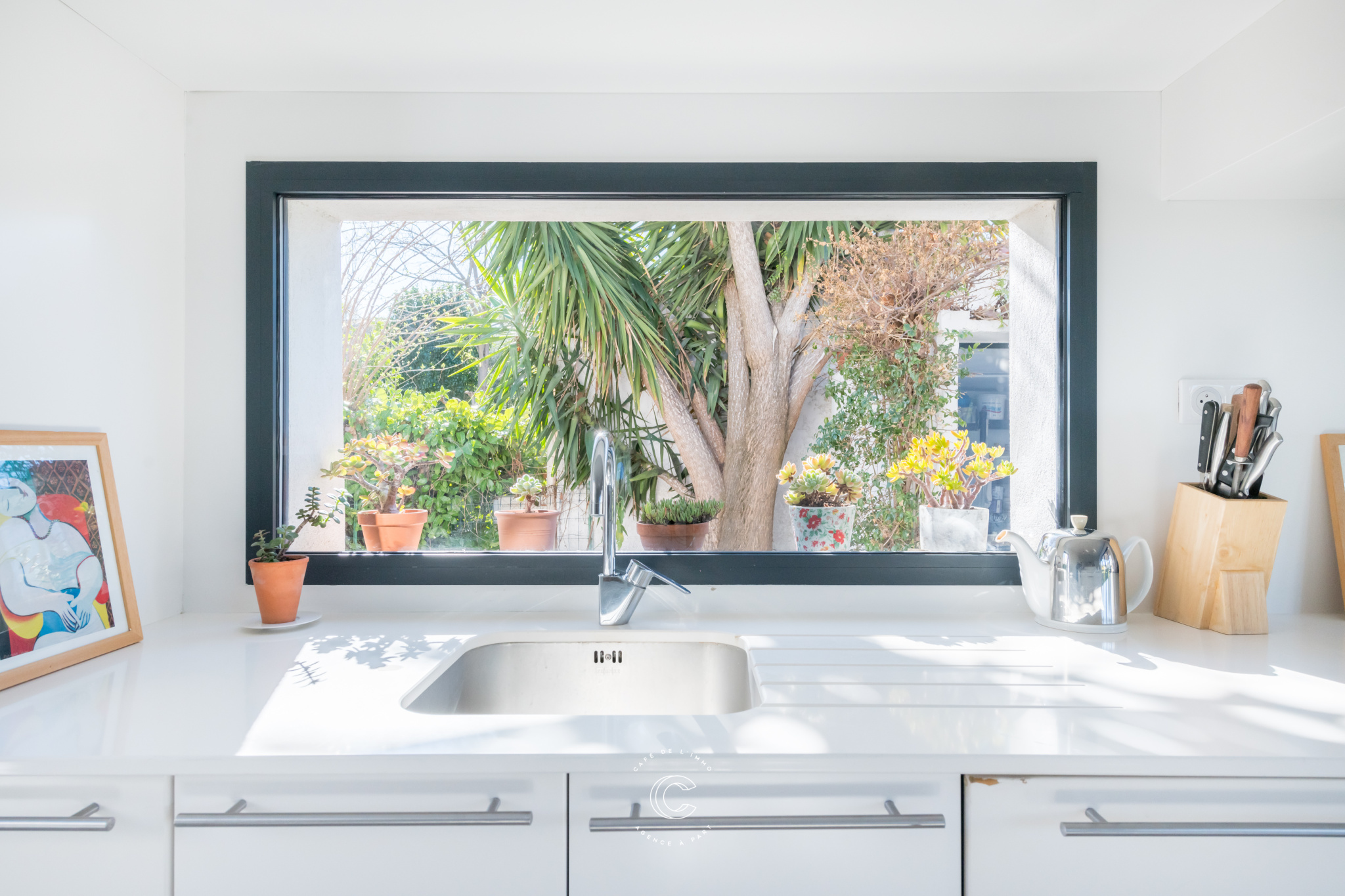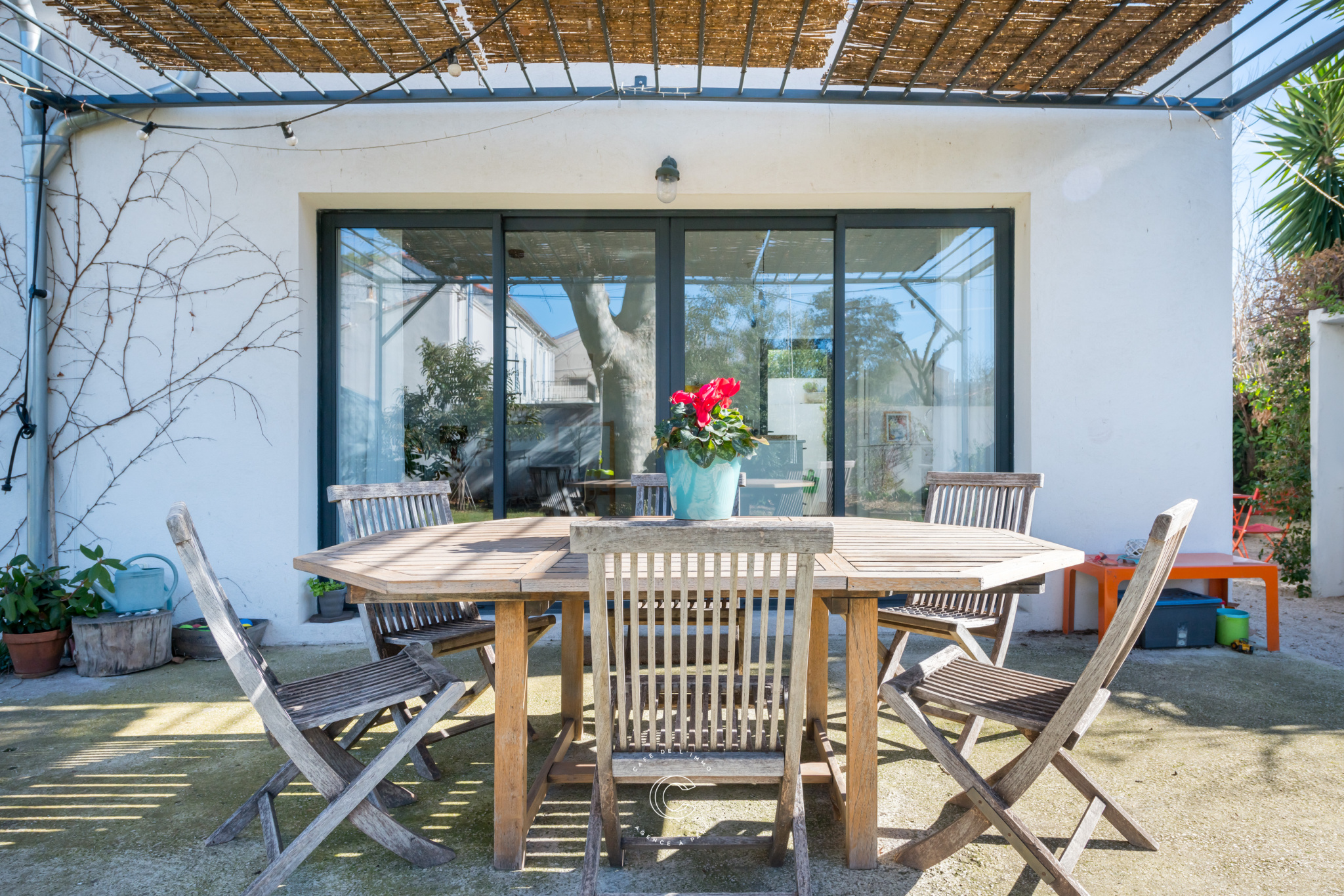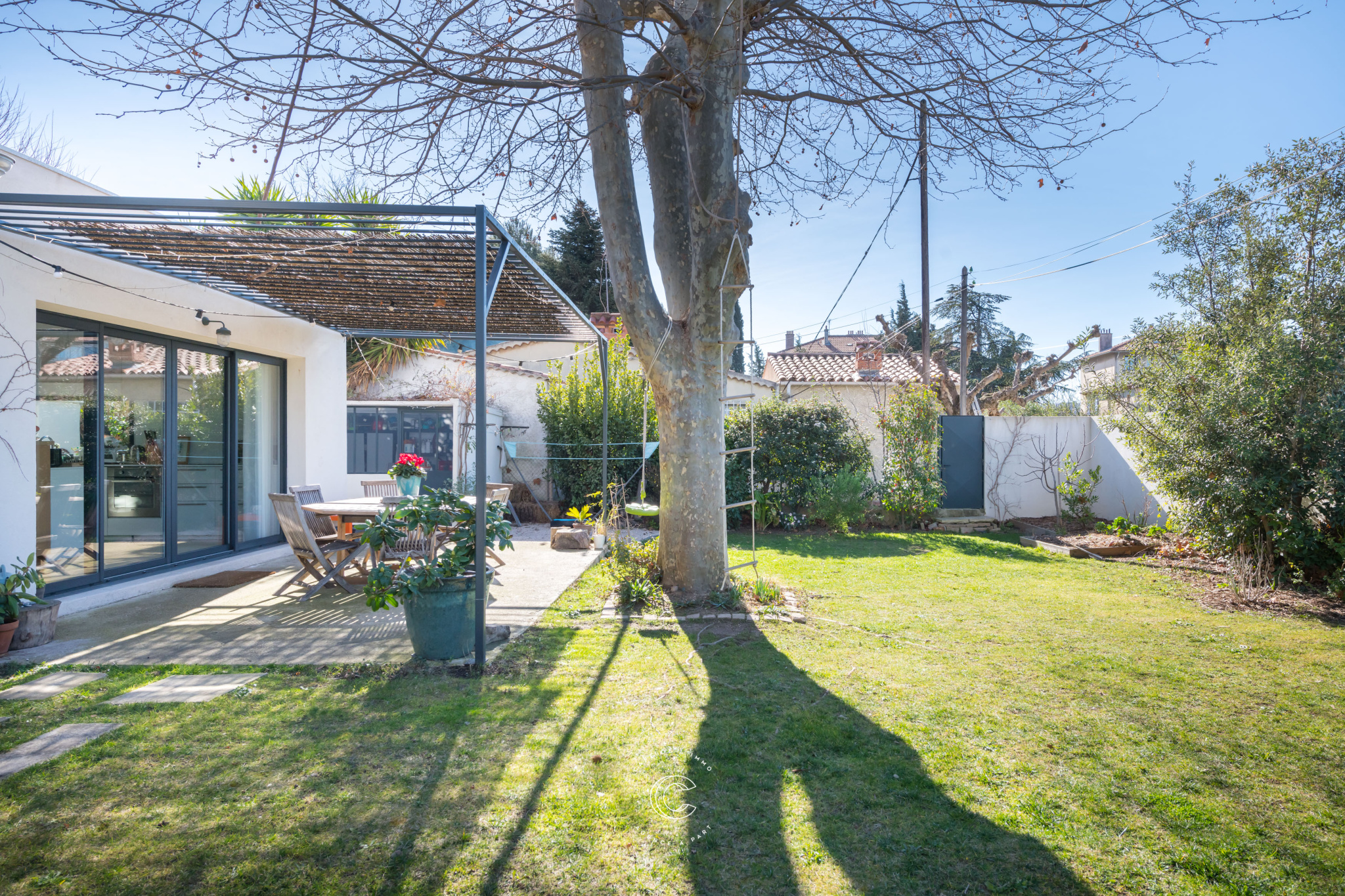 Côté extérieur, vous tomberez sous le charme du patio et du jardin arboré de plus de 300m2 avec son joli mimosa en fleur.