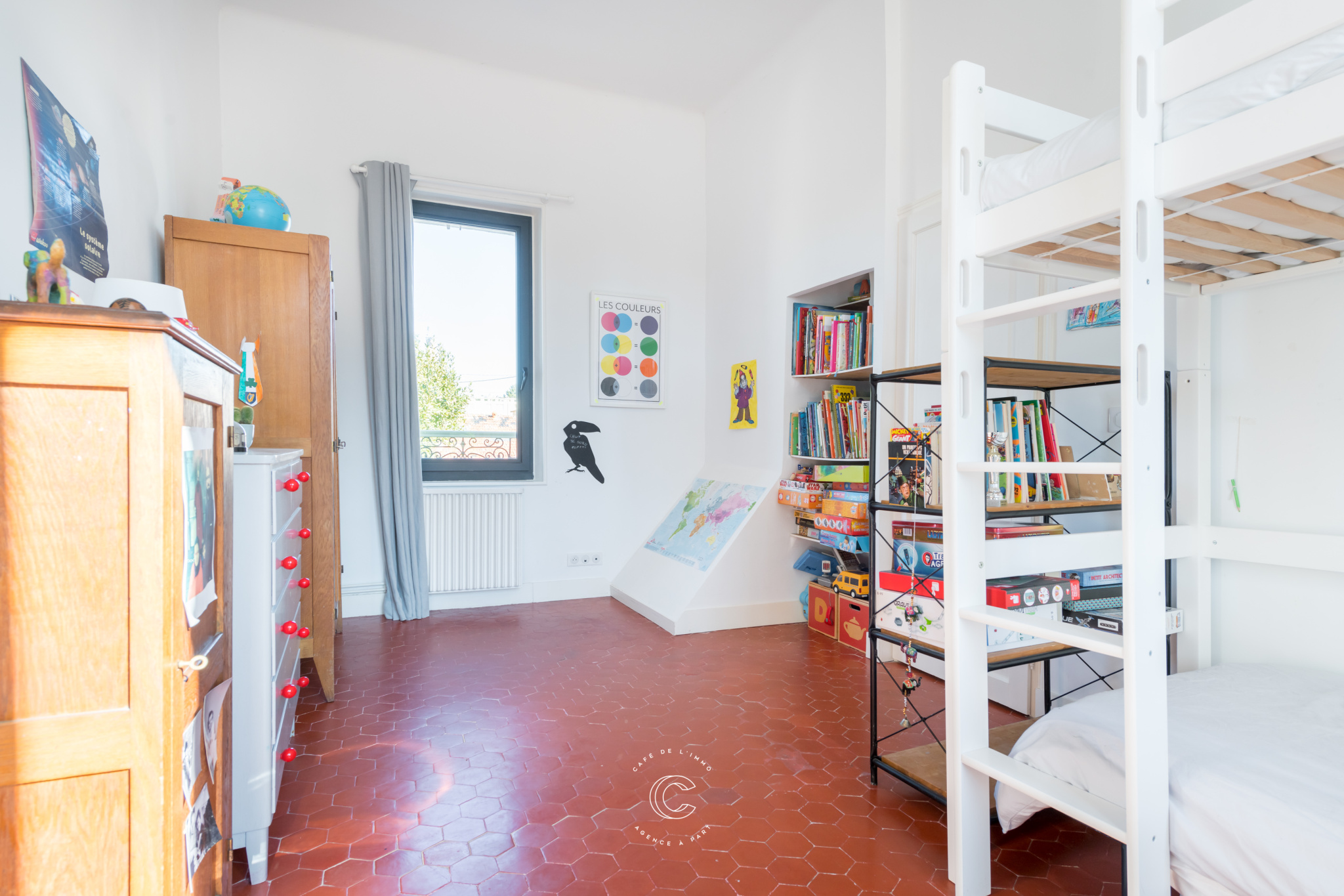 À l'étage vous apprécierez la quiétude de l'espace nuit, parfaitement agencé, composé de deux chambres