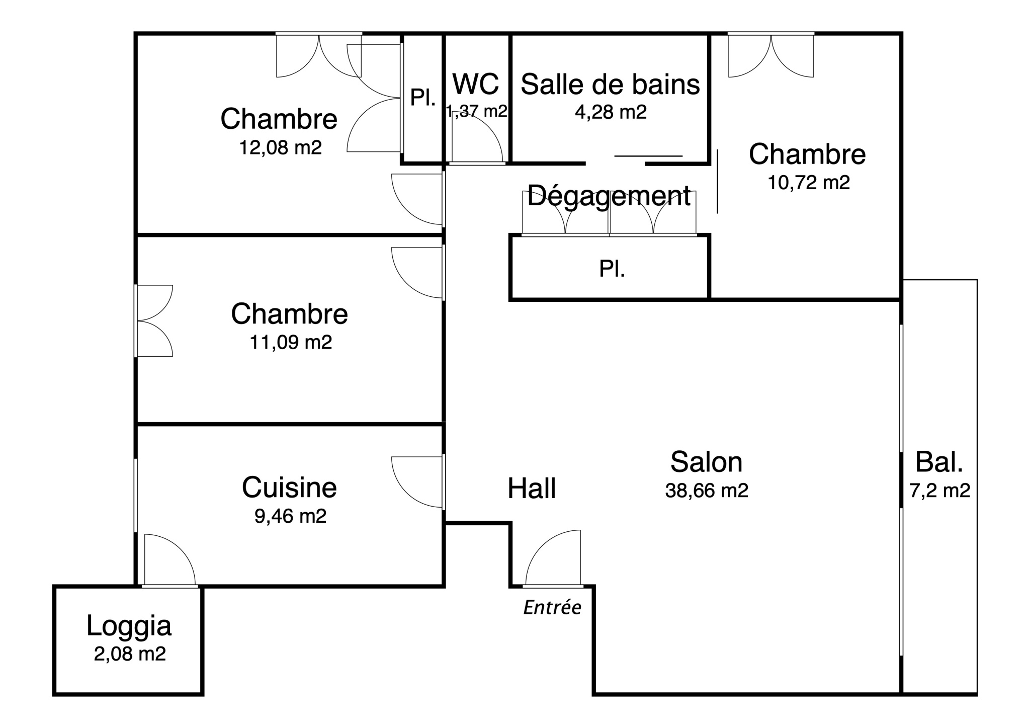 - Côté nuit, l'appartement propose 3 grandes chambres de respectivement 11, 11 et 12 m2. Une salle de bains avec baignoire et douche ainsi qu'un wc séparé complètent les prestations de ce bien.