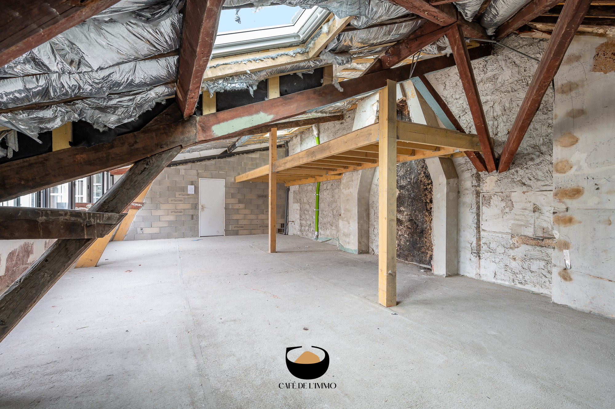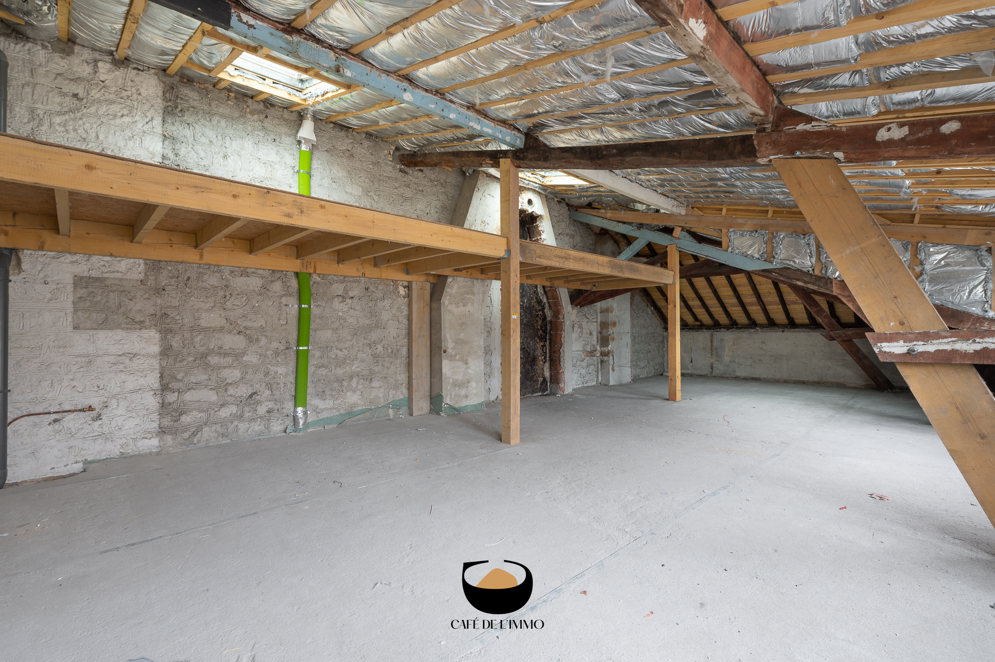 La mezzanine de 17m2 déjà présente vous permettra d'y agencer une chambre enfant ou un bureau.