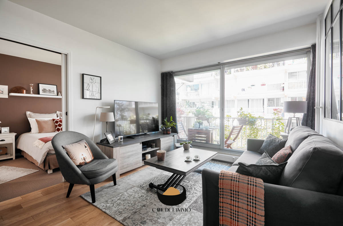 - Un vaste séjour avec l'accès au balcon aménagé qui devient une réelle pièce en plus lors des beaux jours,