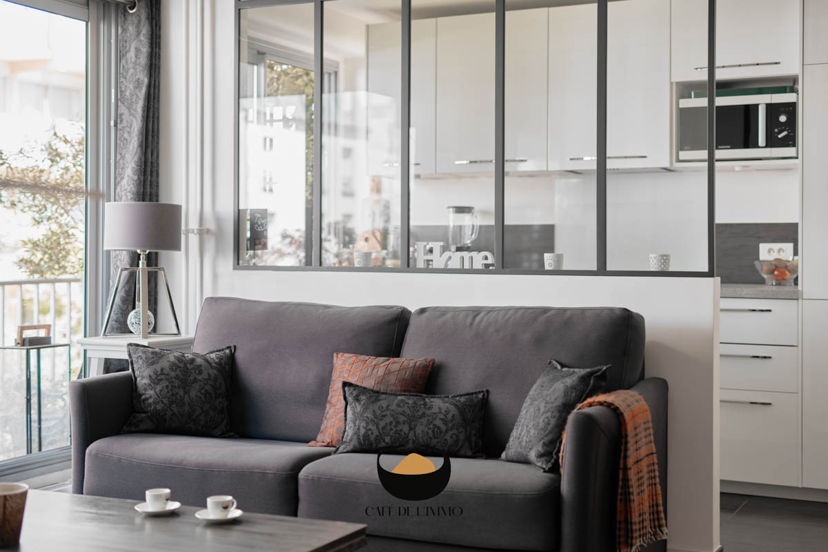 - Une cuisine équipée et séparée du séjour grâce à une verrière offrant profondeur et luminosité,