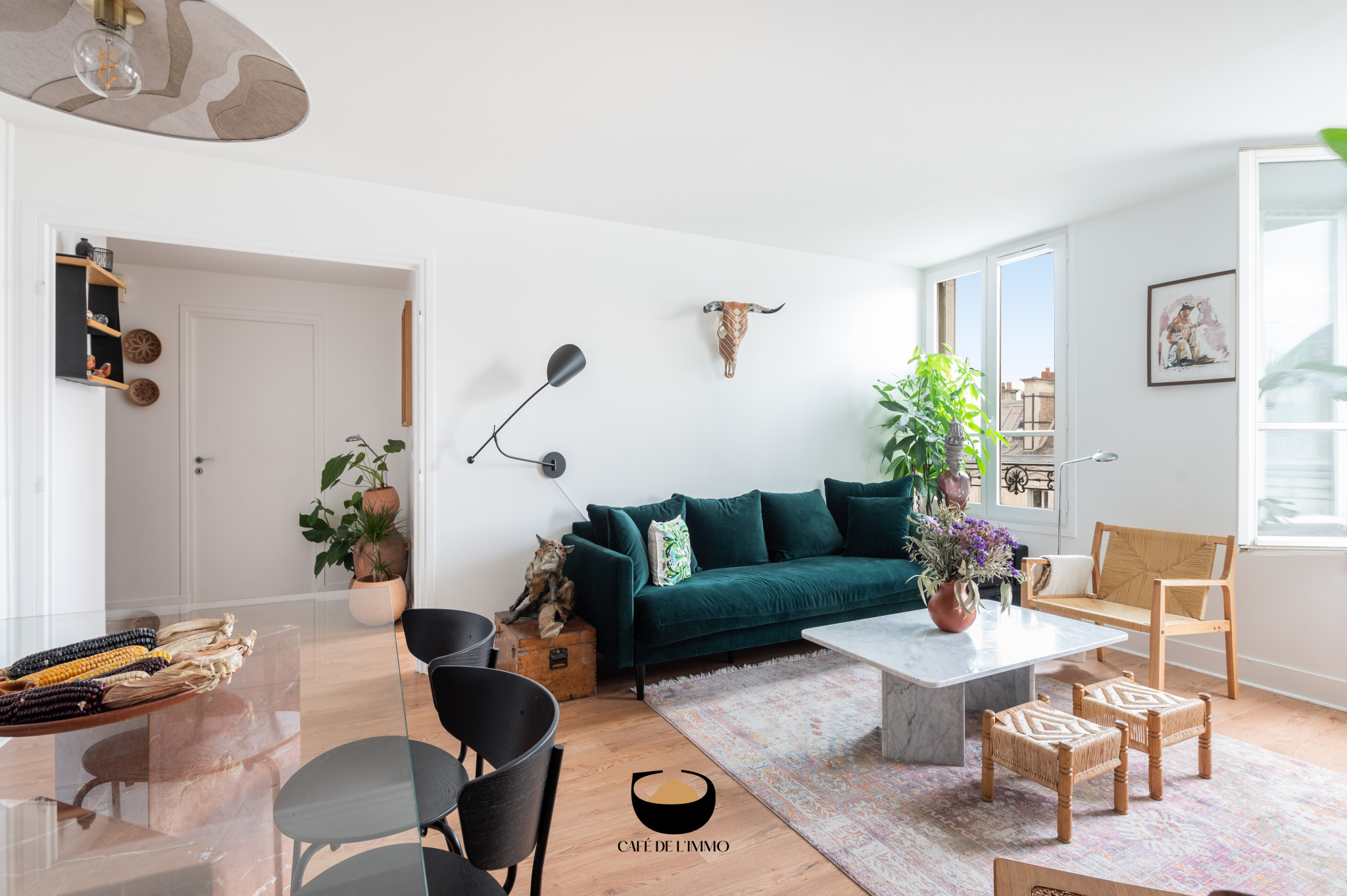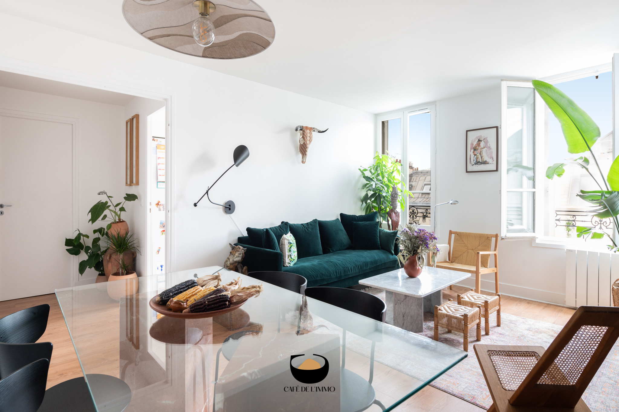 Le Café de l'immo est heureux de vous proposer ces anciennes de chambres de service réunies, tout en haut d'un bel immeuble Haussmannien, d'une surface de 96m2 au sol (89m2 Loi Carrez). Il est composé d'une grande entrée, d'un beau séjour de 35 m2, une cuisine indépendante (avec possibilité de l'ouvrir sur le séjour), deux chambres, une salle de bains, un WC indépendant, ainsi qu'une buanderie.