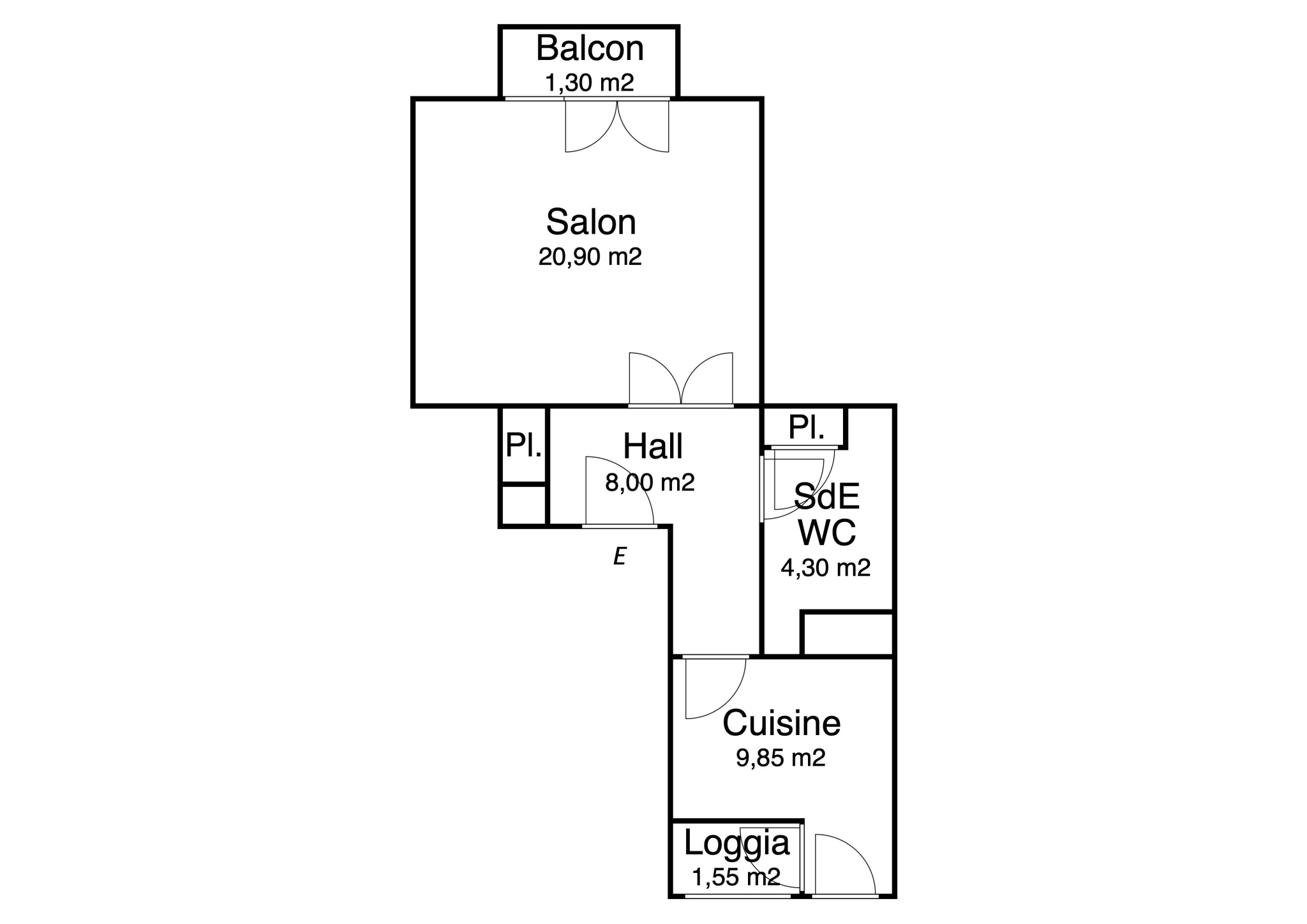 Au centre de l'appartement vous trouverez une grande salle-d'eau avec WC et de grands placards très appréciables.