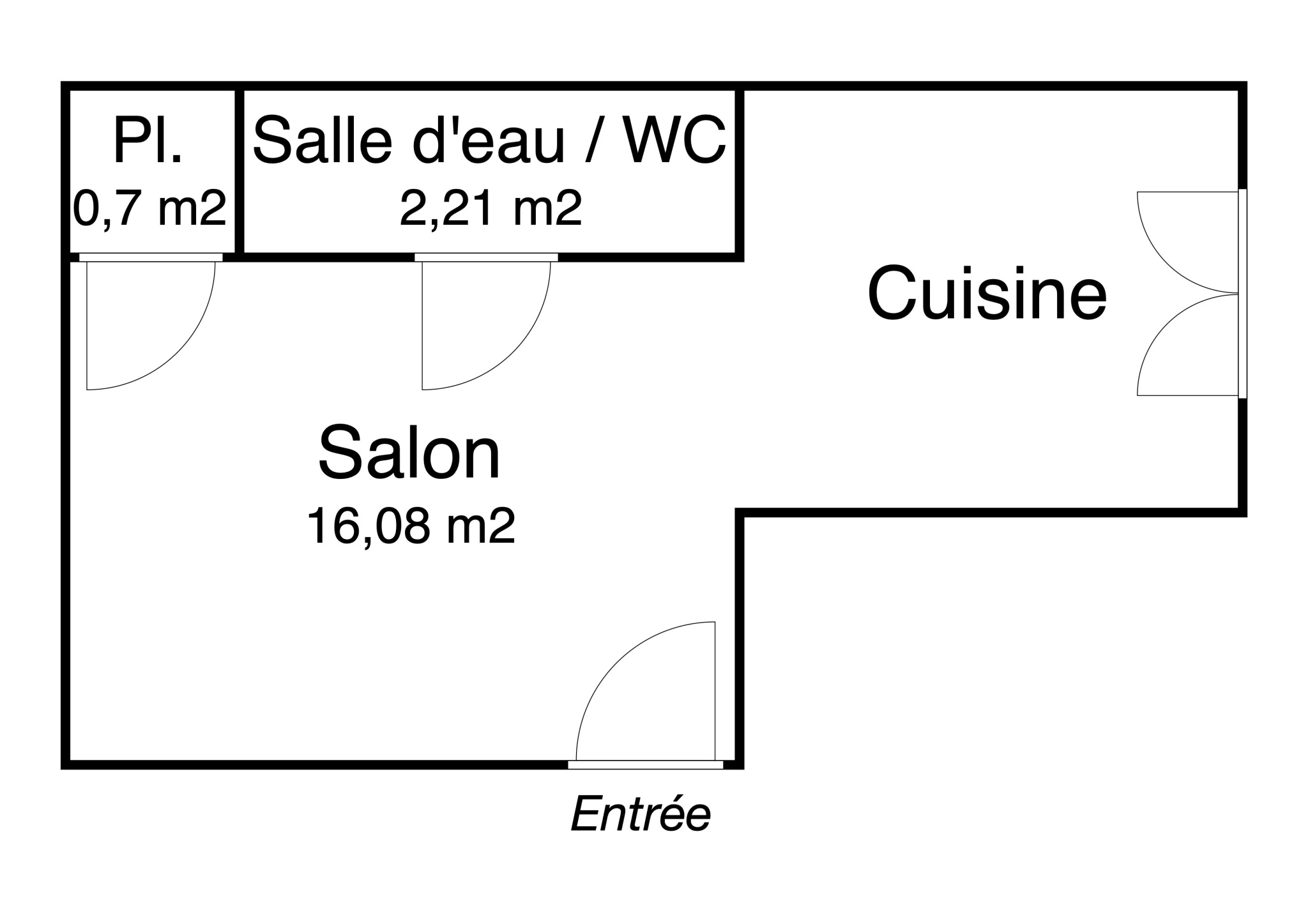 L’appartement se compose d’un espace de vie lumineux avec coin cuisine aménagé et d’une salle d’eau avec WC.