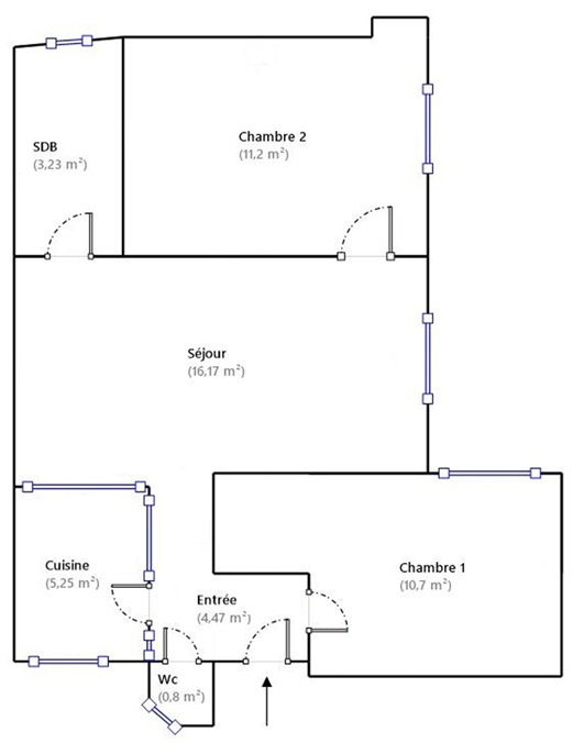 La distribution du bien est idéale : une entrée, un séjour, deux chambres, une salle de bains et des toilettes séparés pour plus de confort.