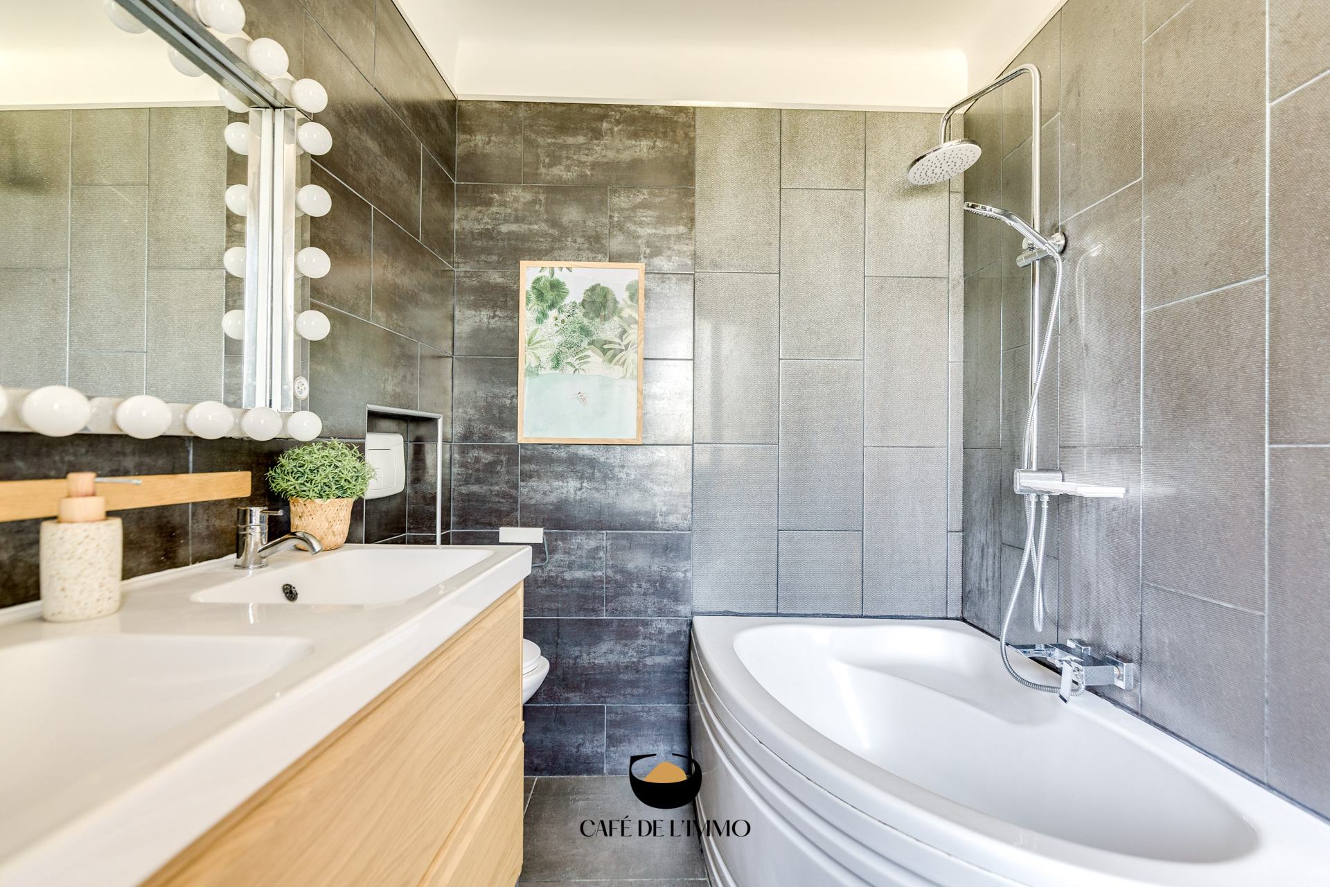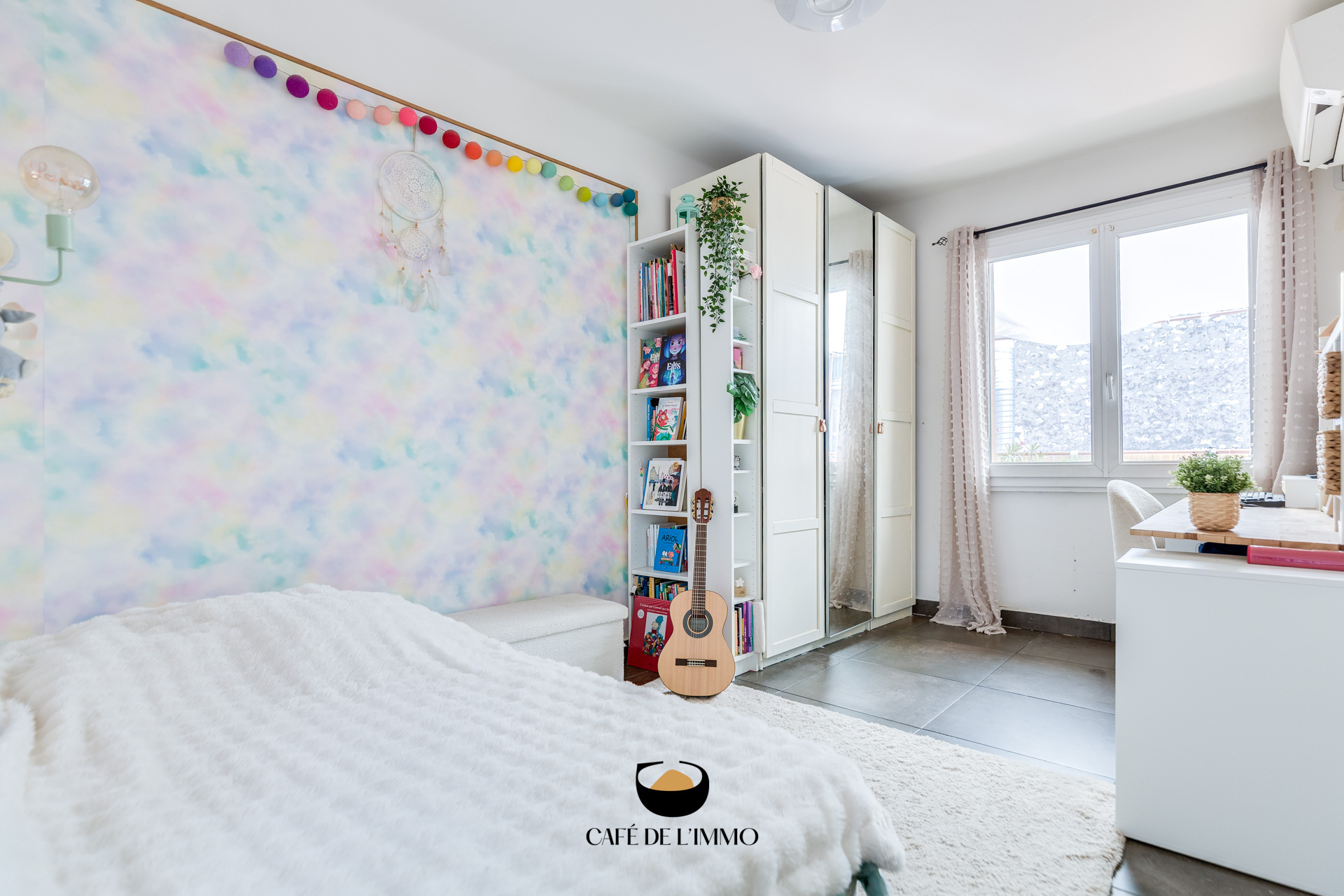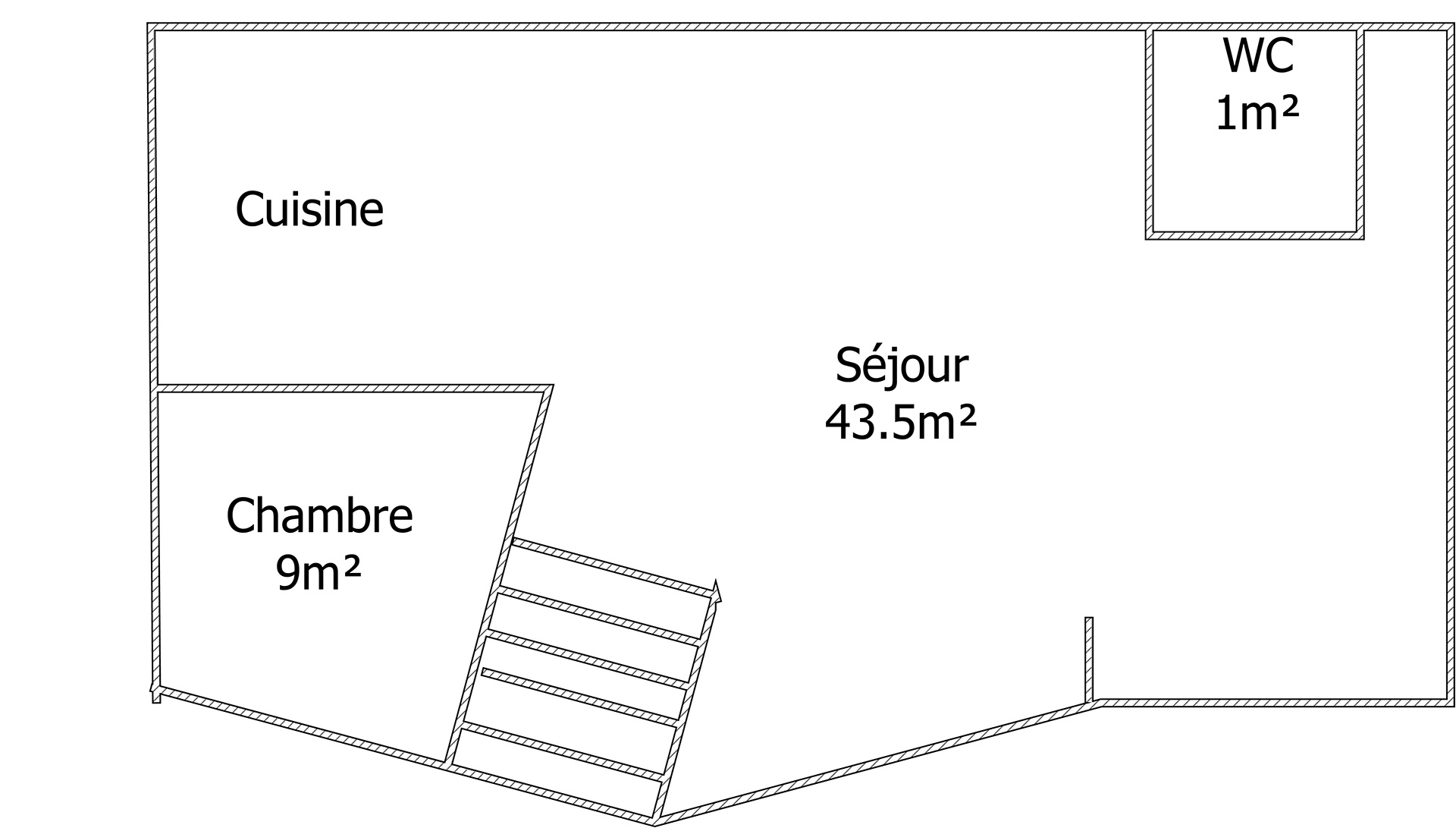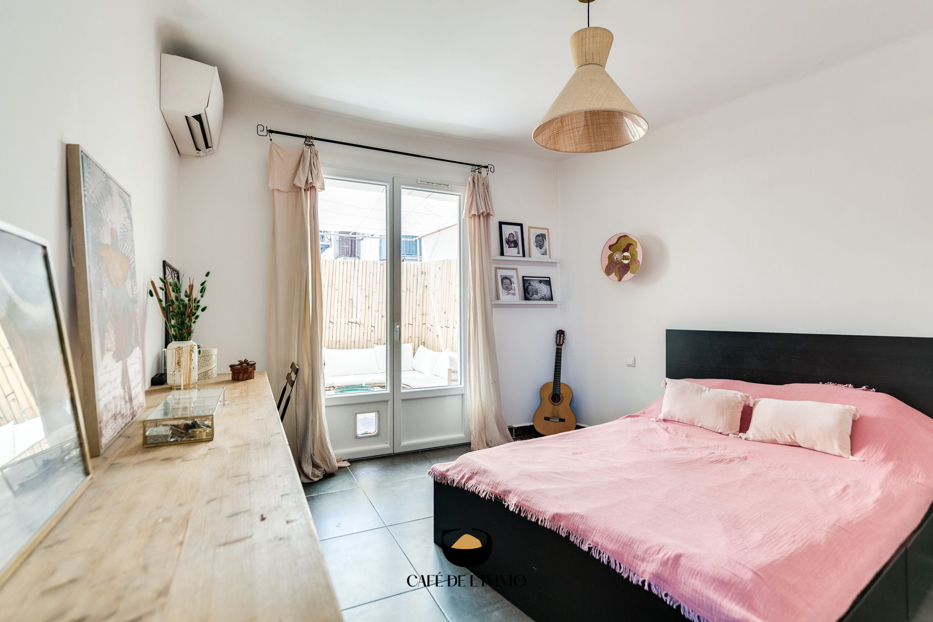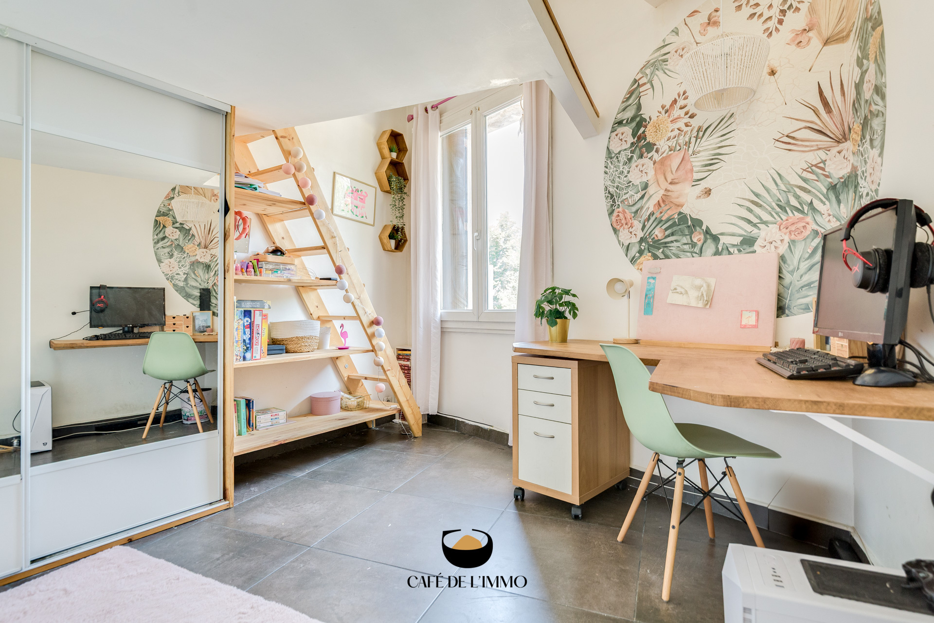L'entrée se fait par une double porte sécurisée en rez-de-chaussée, qui vous invite à monter directement au premier étage via un joli escalier. Vous découvrirez ensuite une vaste pièce de vie traversante de 43m2, lumineuse grâce à sa double exposition nord-sud. Cette pièce combine salon, salle à manger et cuisine ouverte dans une ambiance chaleureuse et soignée. Un coin bureau y a été aménagé, et vous y trouverez également une première chambre de 9m2 ainsi qu’un WC séparé.