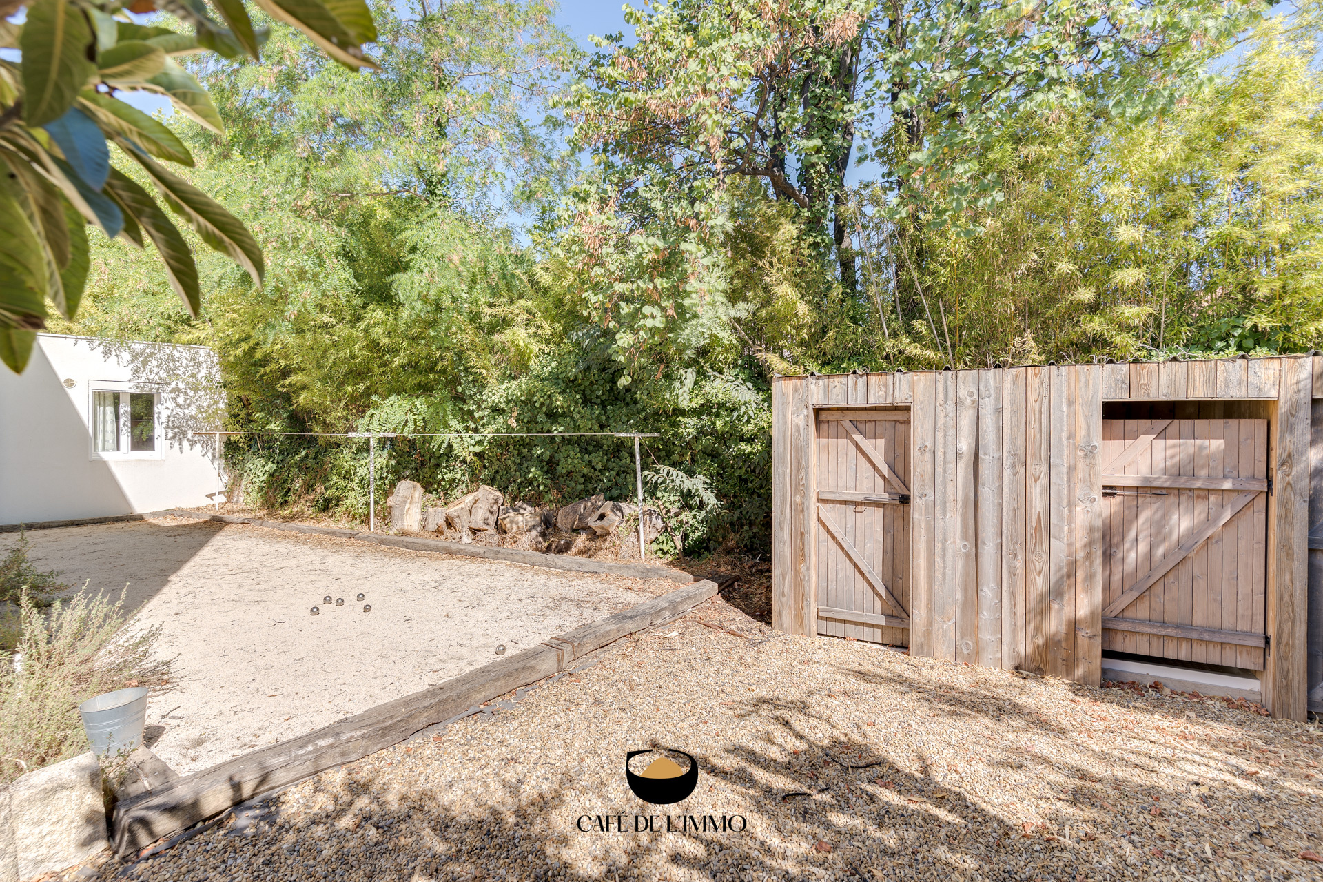Une piscine au sel vient parfaire l’ambiance méridionale, aux côtés d’un terrain de pétanque qui invite aux fins de journée ensoleillées entre amis. En contrebas, une cave permet de stocker avec facilité.