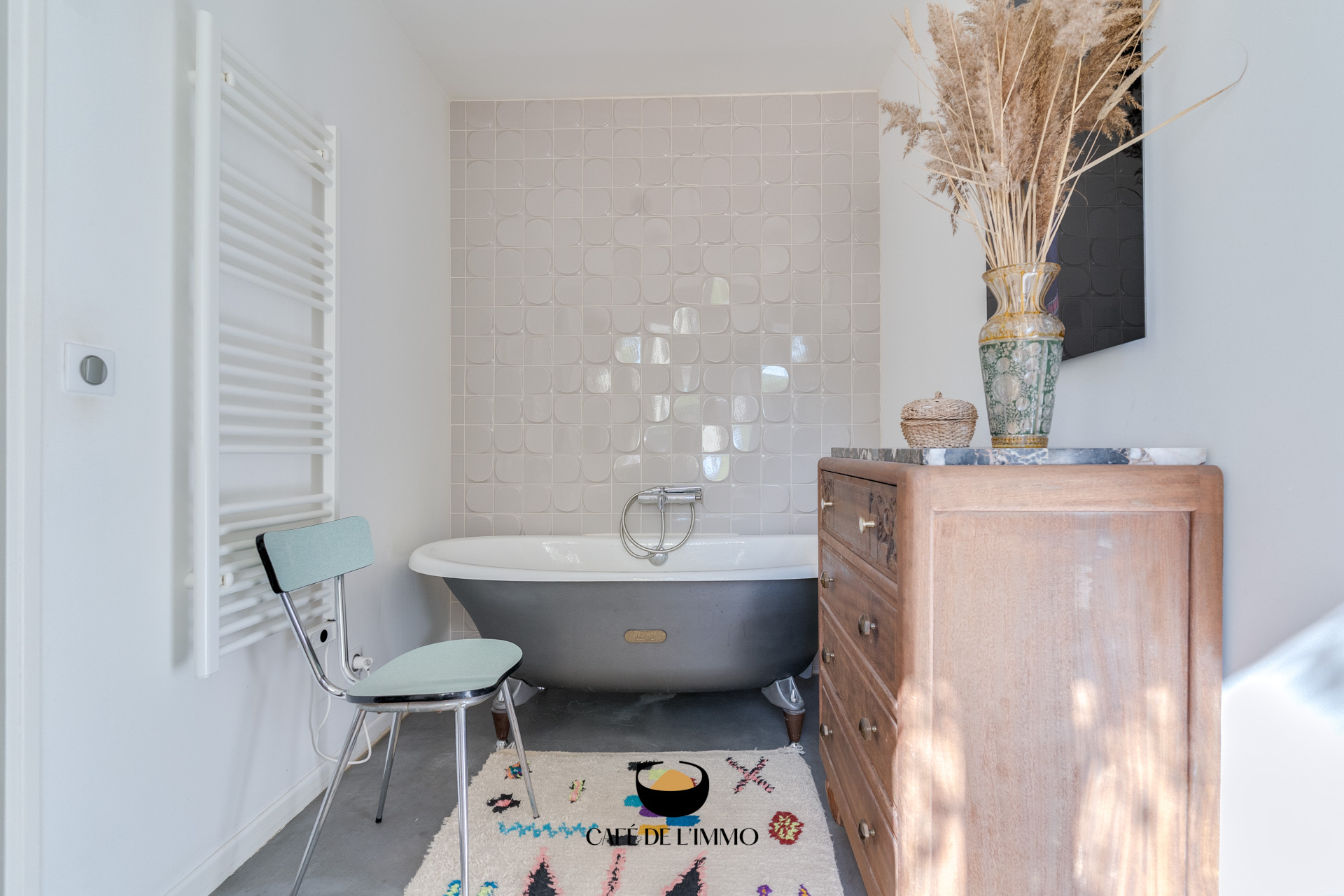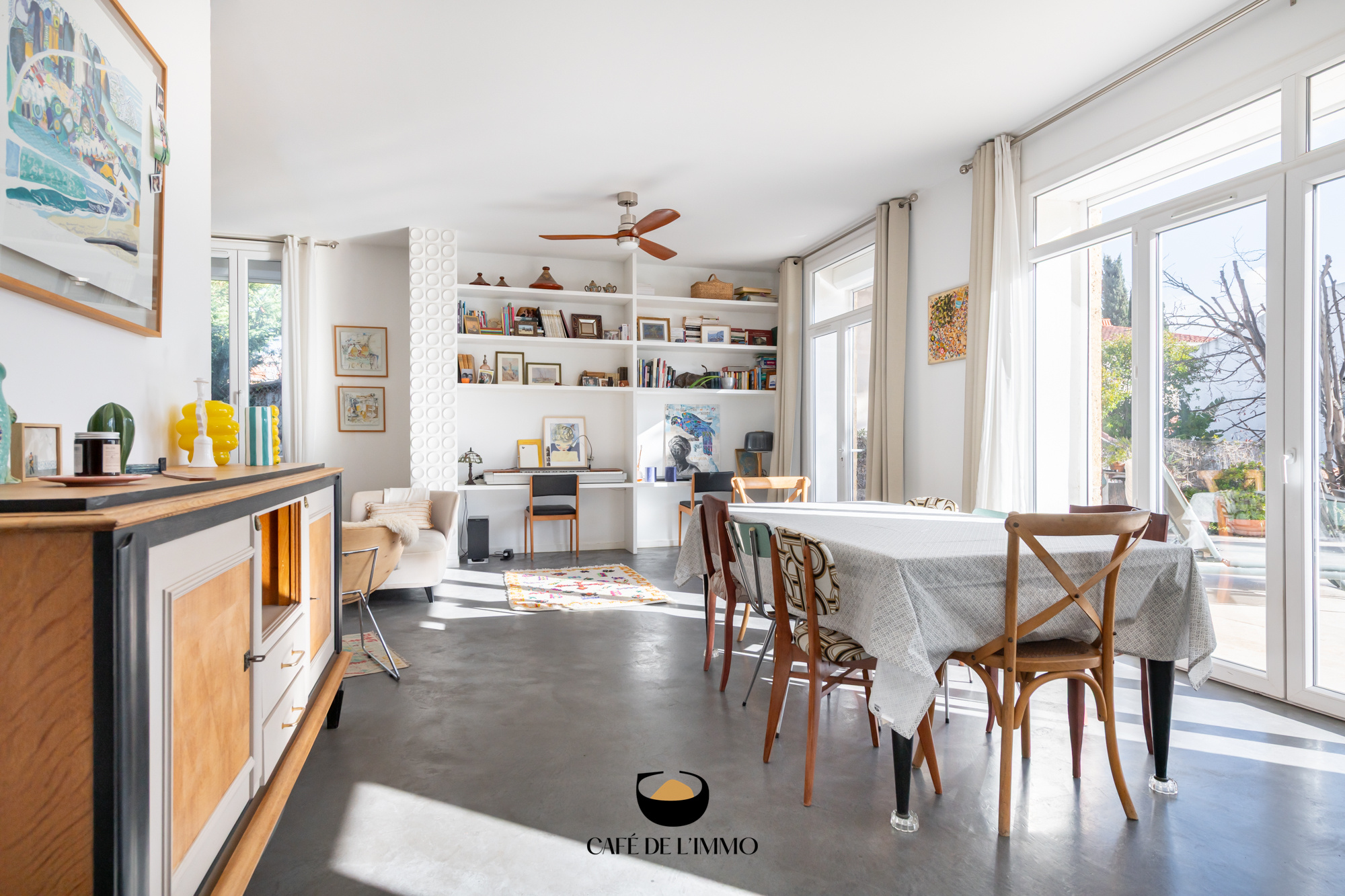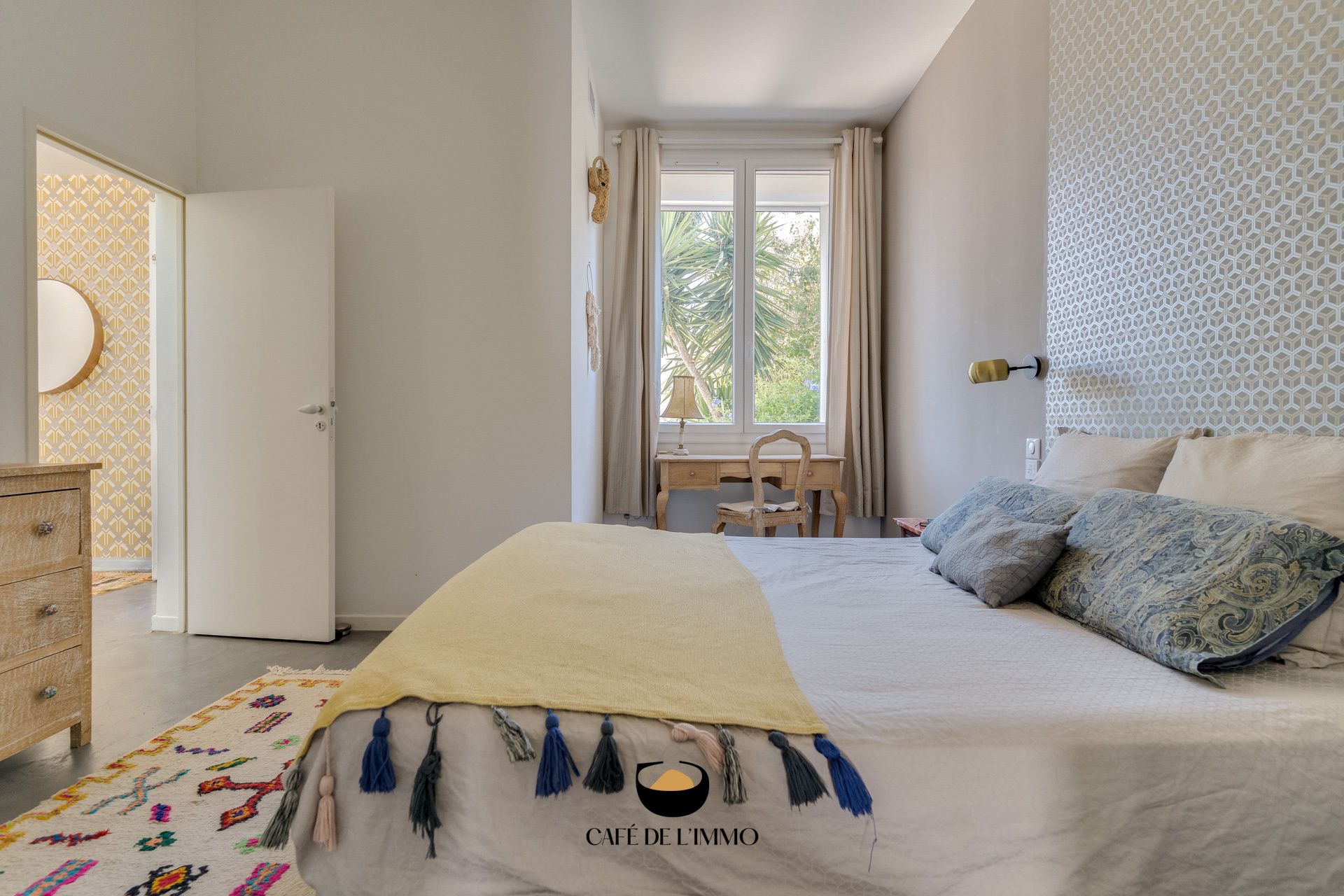 La rénovation, guidée par une volonté de qualité et d’esthétique, mêle avec élégance matériaux contemporains et esprit d’origine : béton ciré, claustras venus d’Espagne, ouvertures généreuses, chaque choix a été fait avec soin.