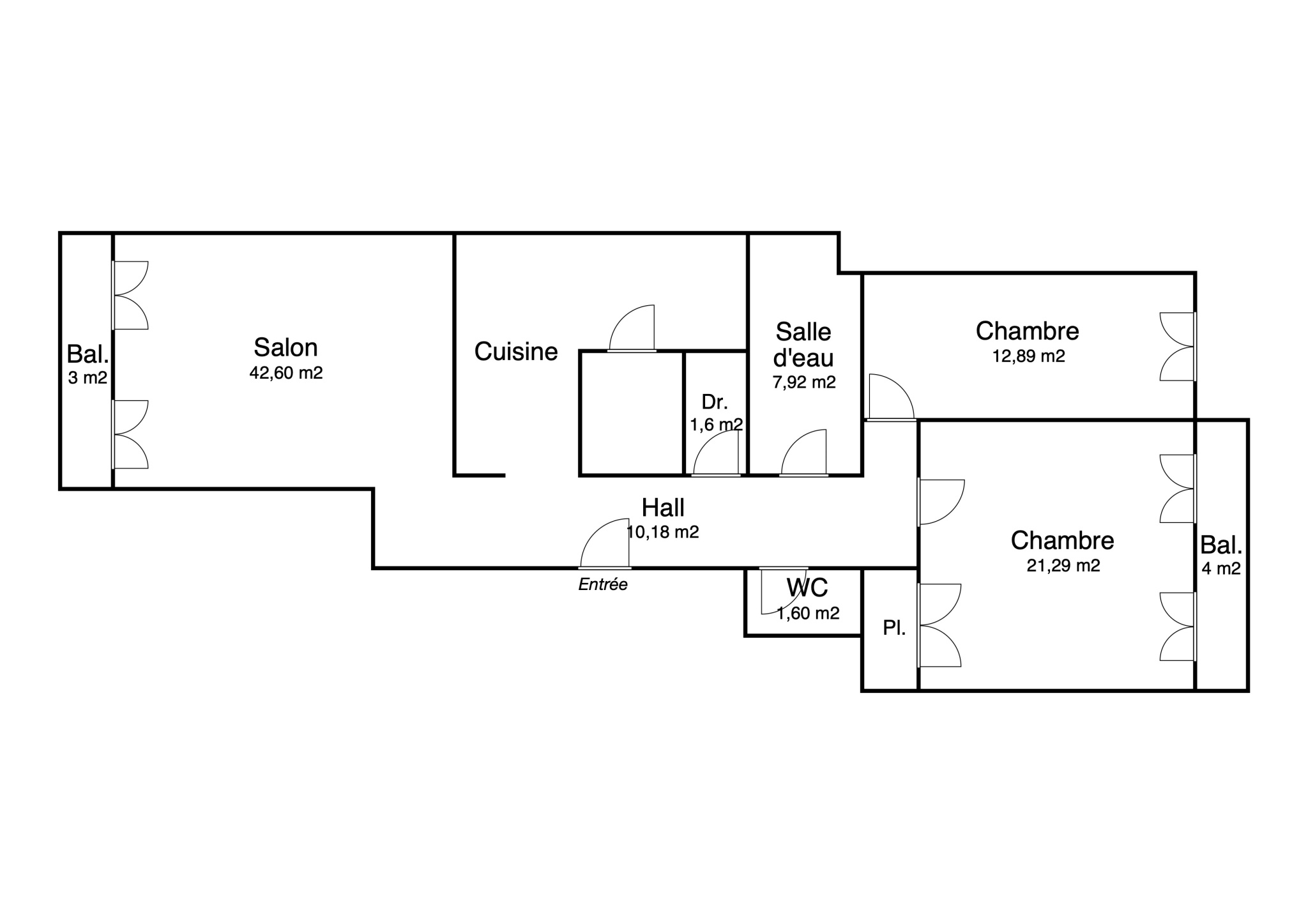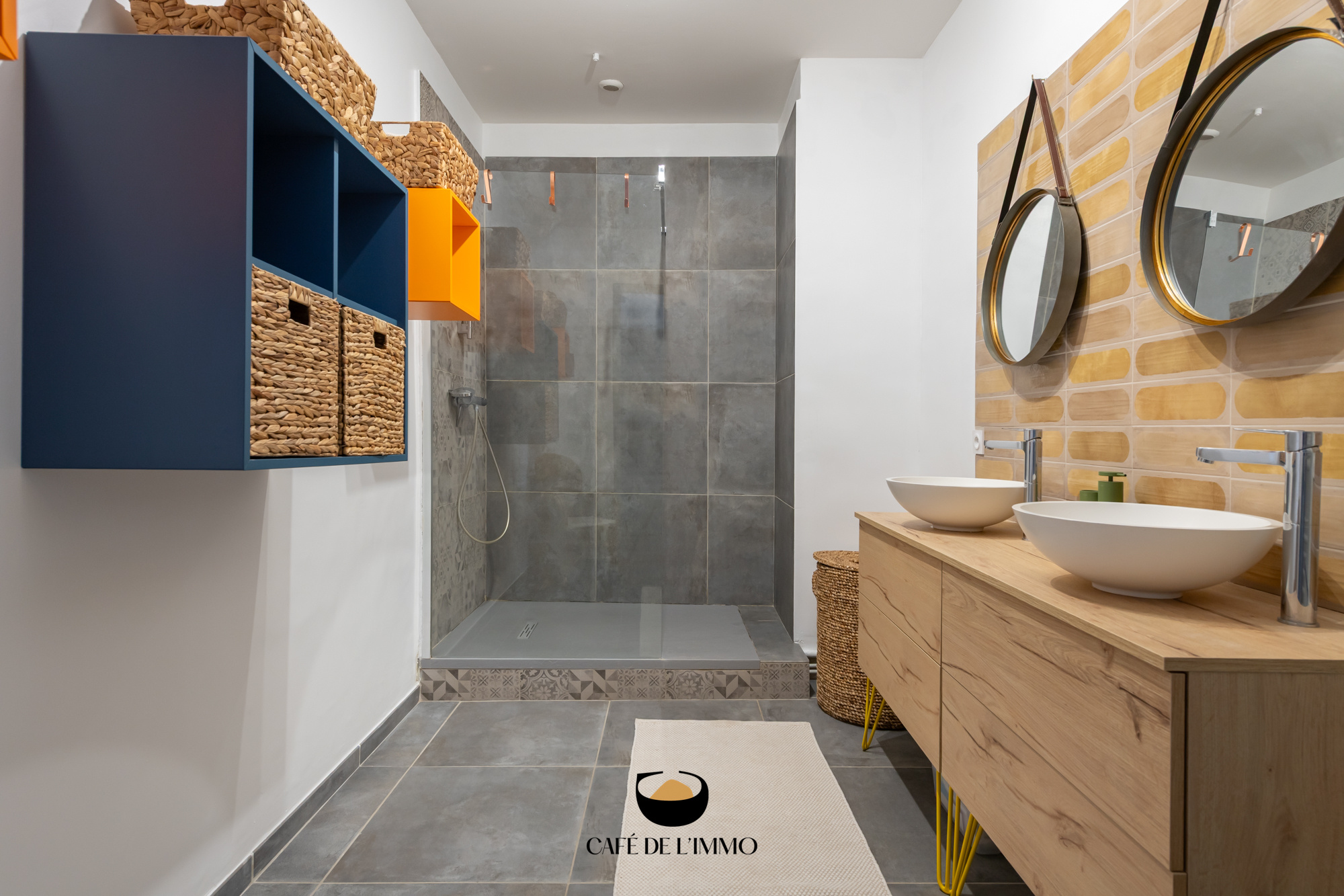 - Un grand hall d'entrée de 10 m2, desservant d'un côté la partie salon/cuisine, de l'autre les chambres. Cet espace permet également d'accéder à une grande salle d'eau avec douche à l'italienne et double vasque, à un coin dressing ainsi qu'à un wc séparé.