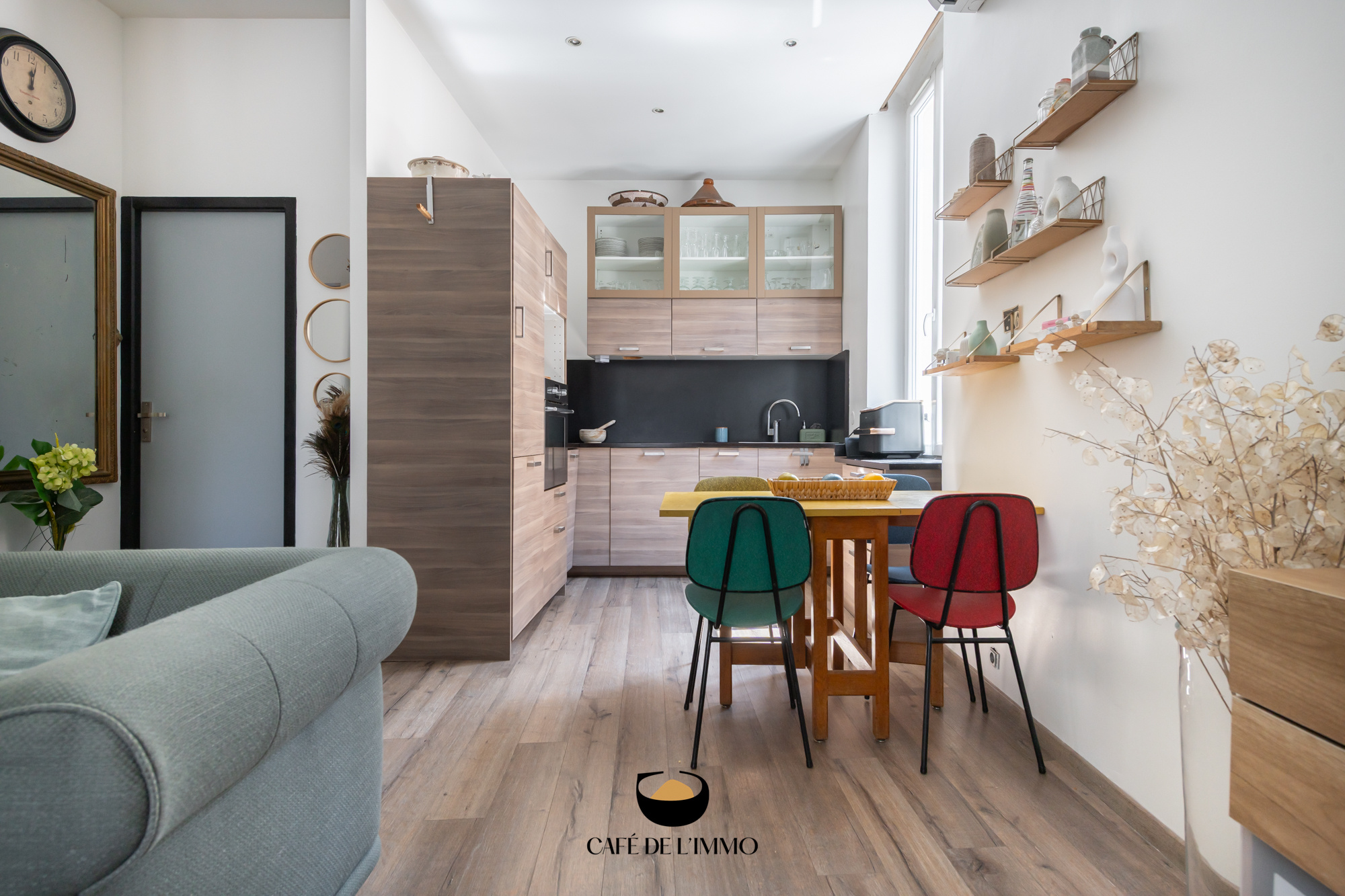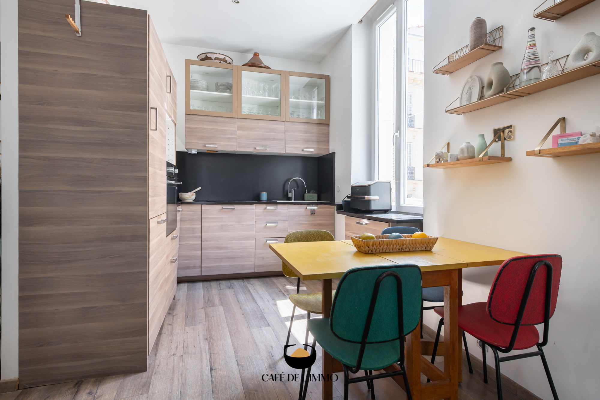 Grâce à sa double exposition, l’appartement baigne dans une clarté constante, renforcée par une rénovation douce et soignée. Le séjour s’ouvre sur une cuisine moderne et fonctionnelle, formant un espace de vie agréable, parfaitement au calme. Car au-dessous, pas de voisins bruyants : les deux premiers niveaux de l’immeuble sont occupés par un commerce, garantissant une tranquillité rare en plein centre-ville.