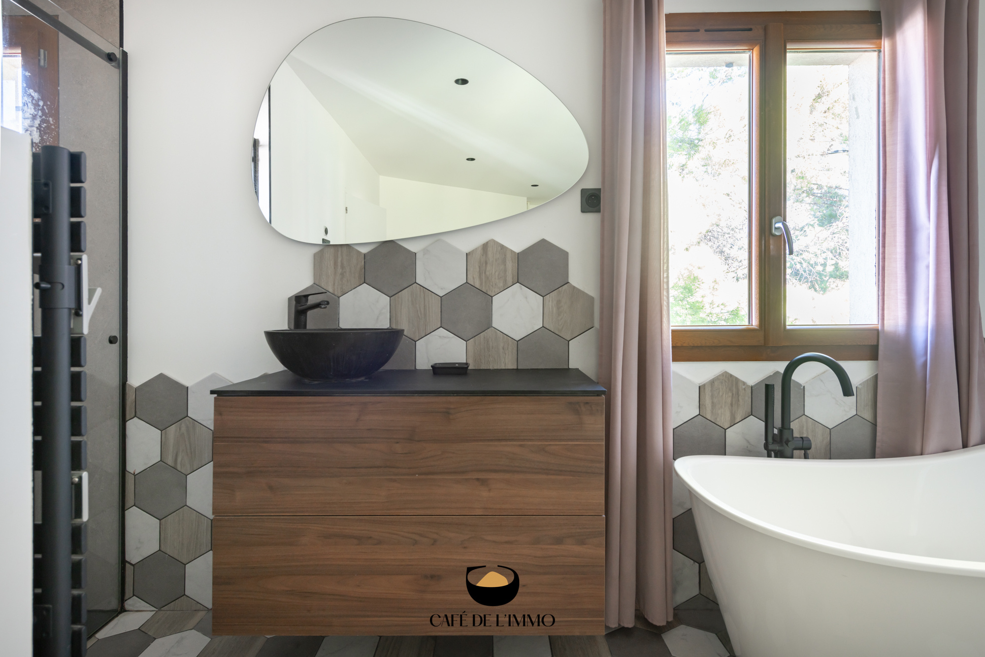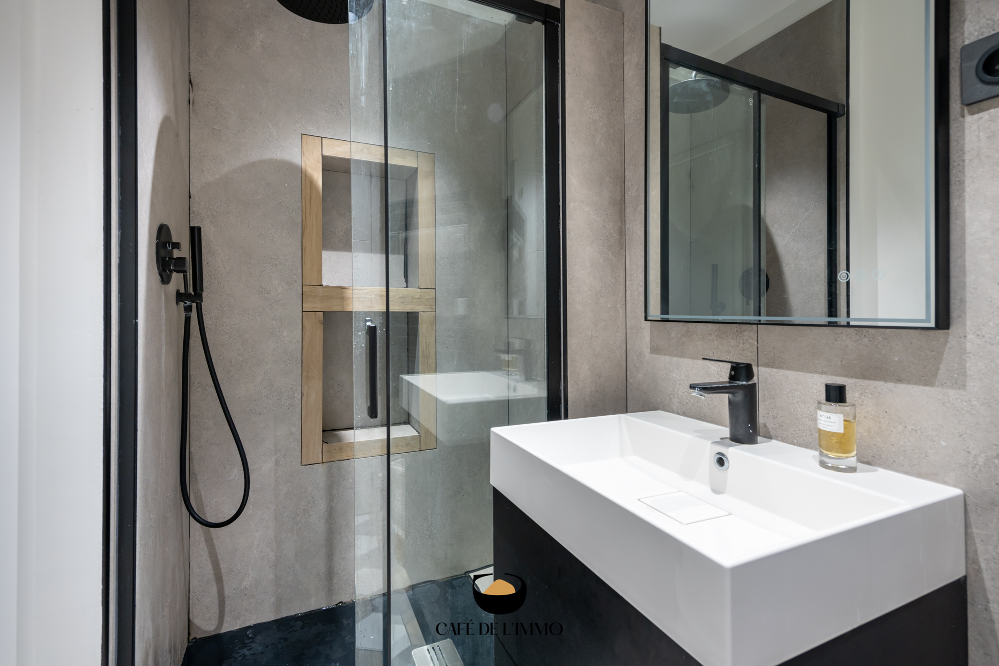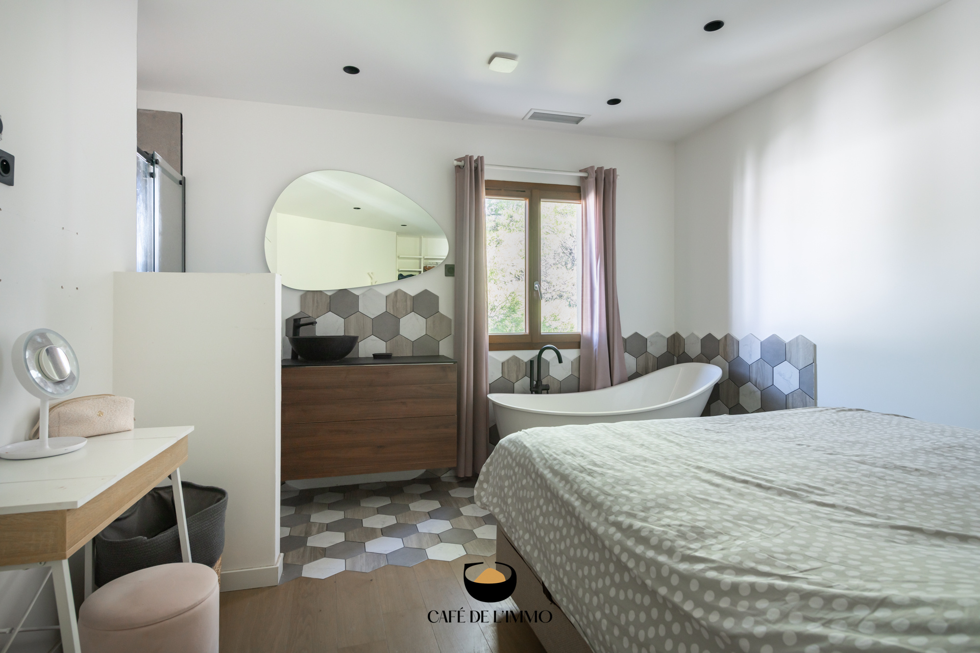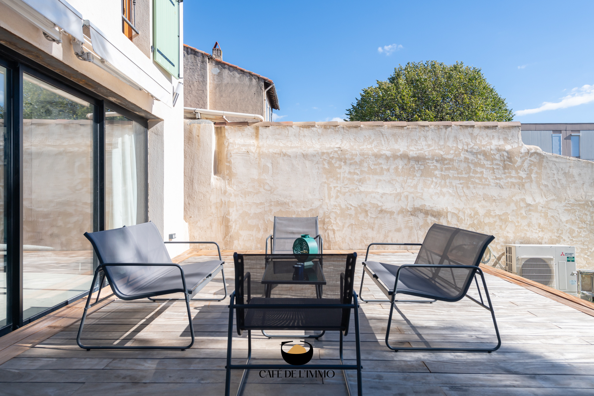 Dans le prolongement, sa terrasse de 35 m2, ornée de Cumaru, propose un espace de vie supplémentaire.