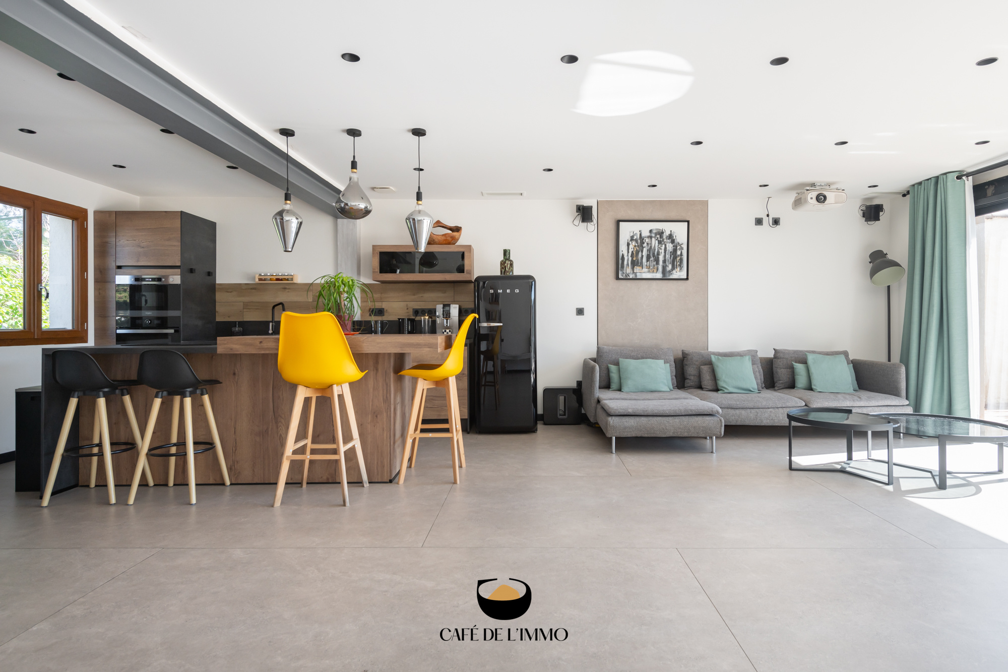 Au premier étage de 50 m2 se trouve une superbe pièce de vie lumineuse, grâce à ses nombreuses fenêtres.