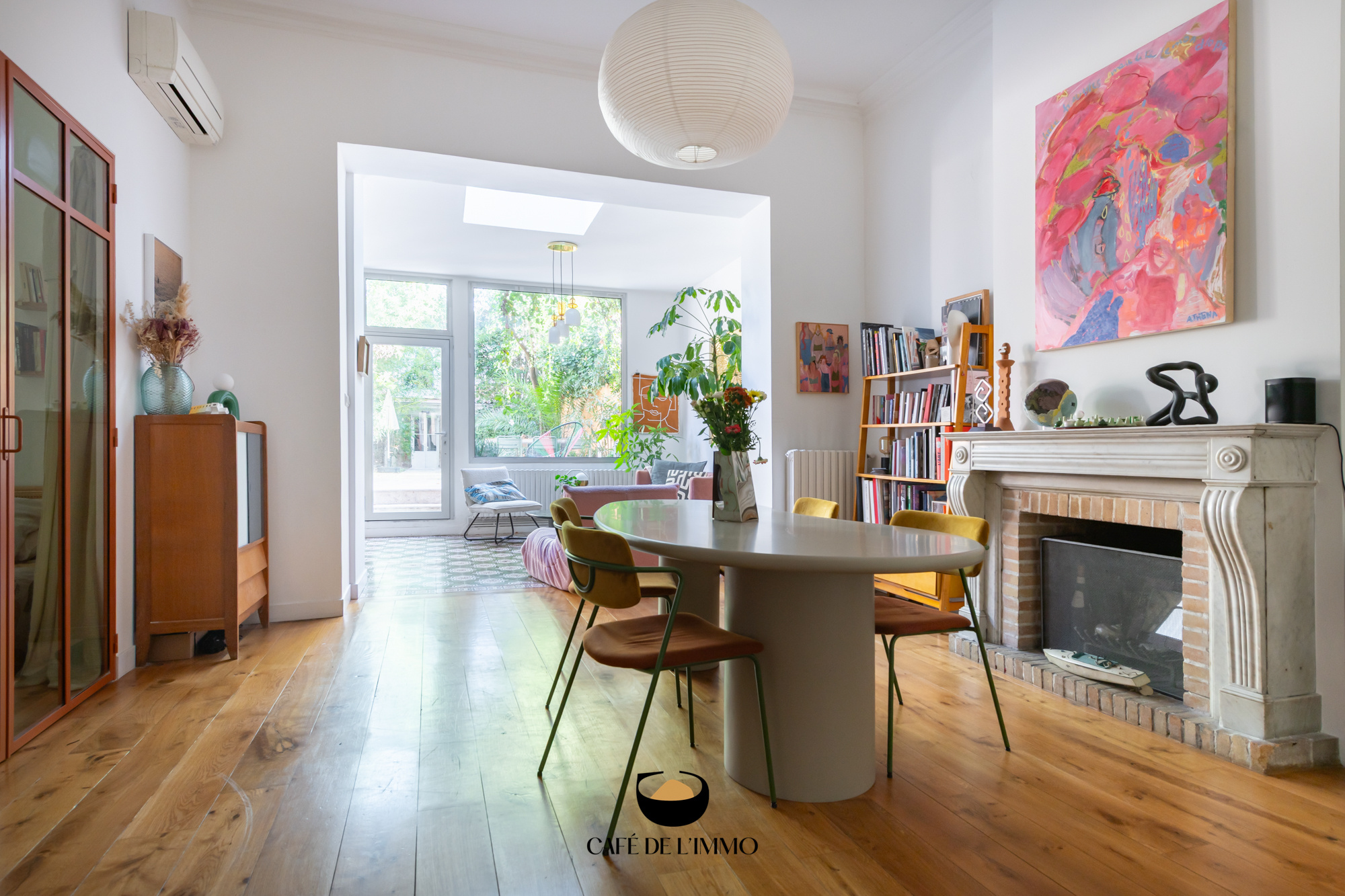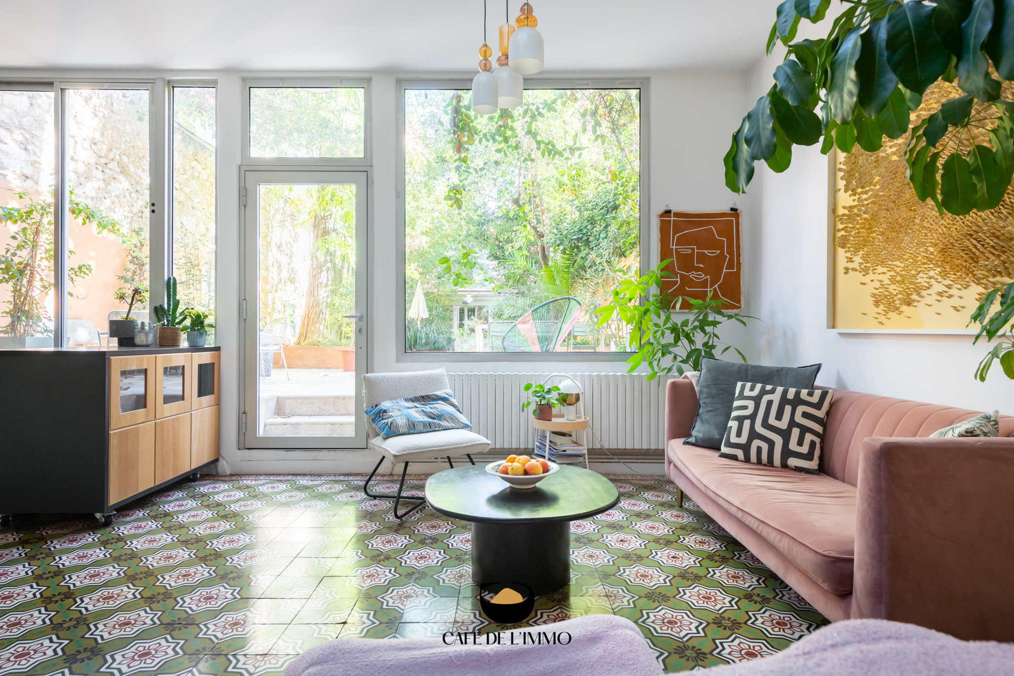 - Une fois passé le hall d'entrée, vous accéderez à un grand salon/séjour de 46 m2, avec sa cuisine équipée attenante. Beau parquet, carreaux de ciment, hauteur sous plafond et cheminée se mêlent pour créer une atmosphère unique, magnifiée par un puits de lumière et la grande baie vitrée. Cette dernière vous permettra d'accéder à un incroyable jardin de plus de 130 m2, arboré et au calme absolu. Doté de plusieurs espaces de convialité, il fera le bonheur des grands comme des petits, et ce tout au long de l'année. Une jolie dépendance située au fond (comprenant une chambre + salle d'eau/wc), vous permettra d'accueillir vos invités dans les meilleures conditions.