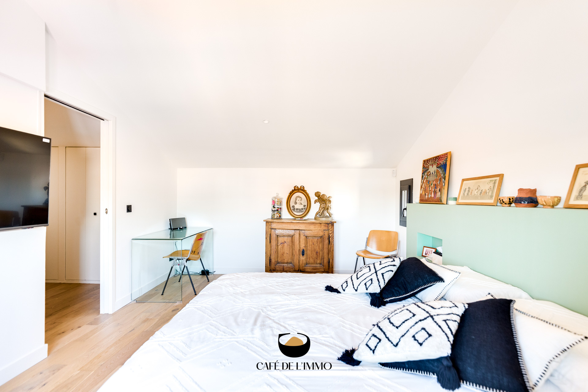 À l’étage, une véritable suite parentale vous attend : un espace intime avec un grand dressing, une salle d’eau moderne et un WC privatif.