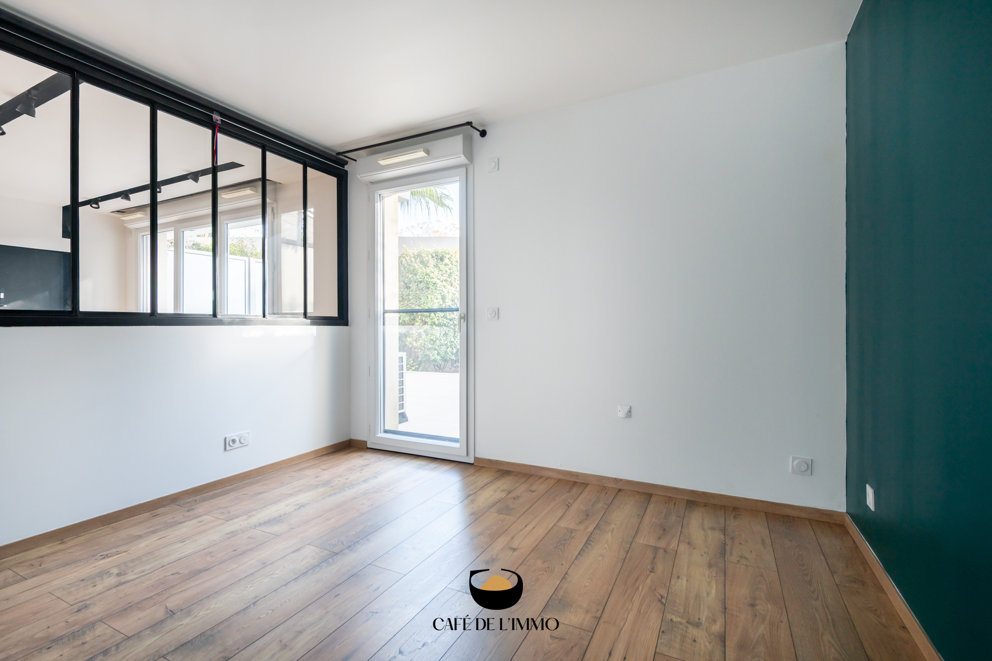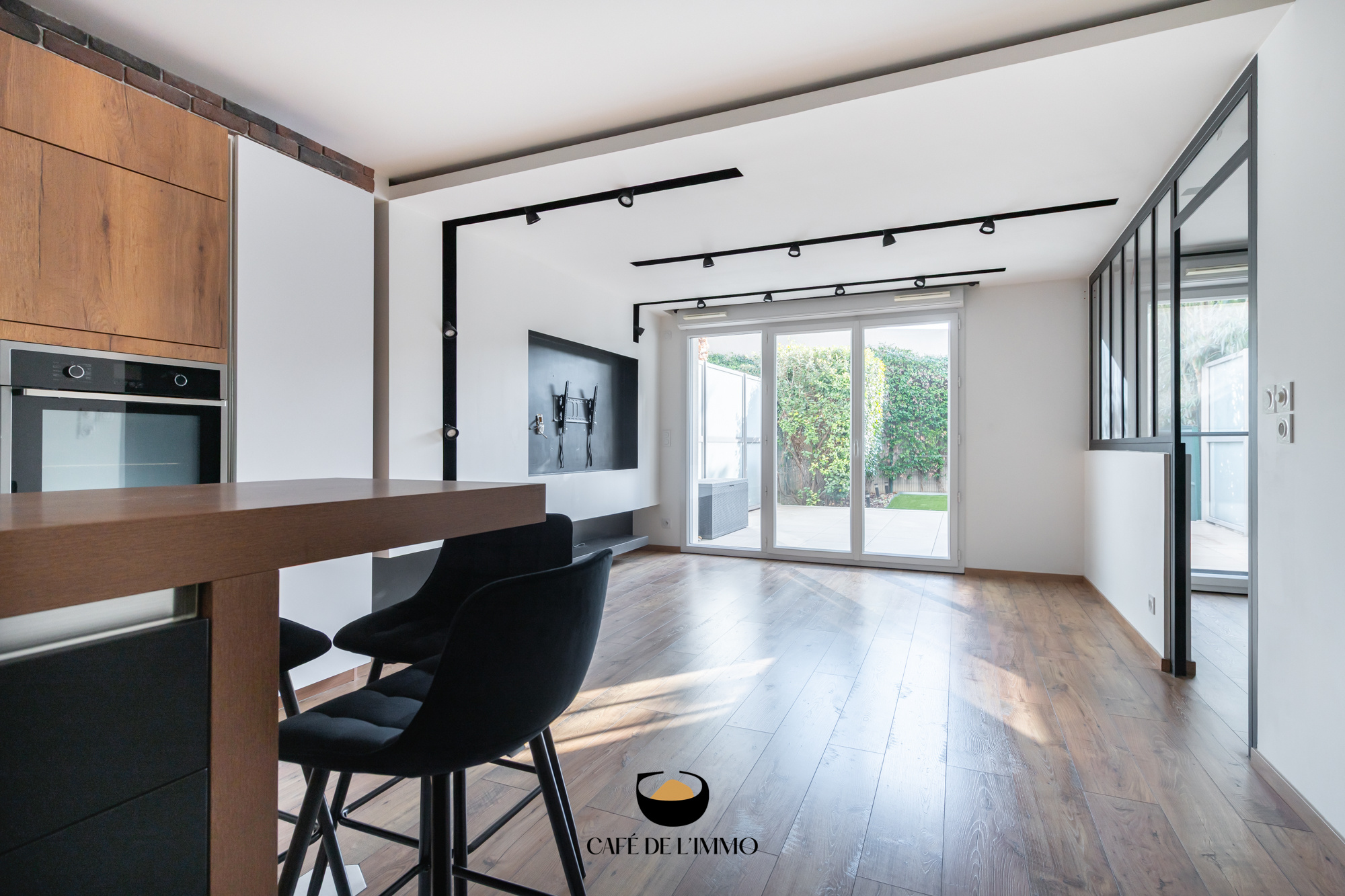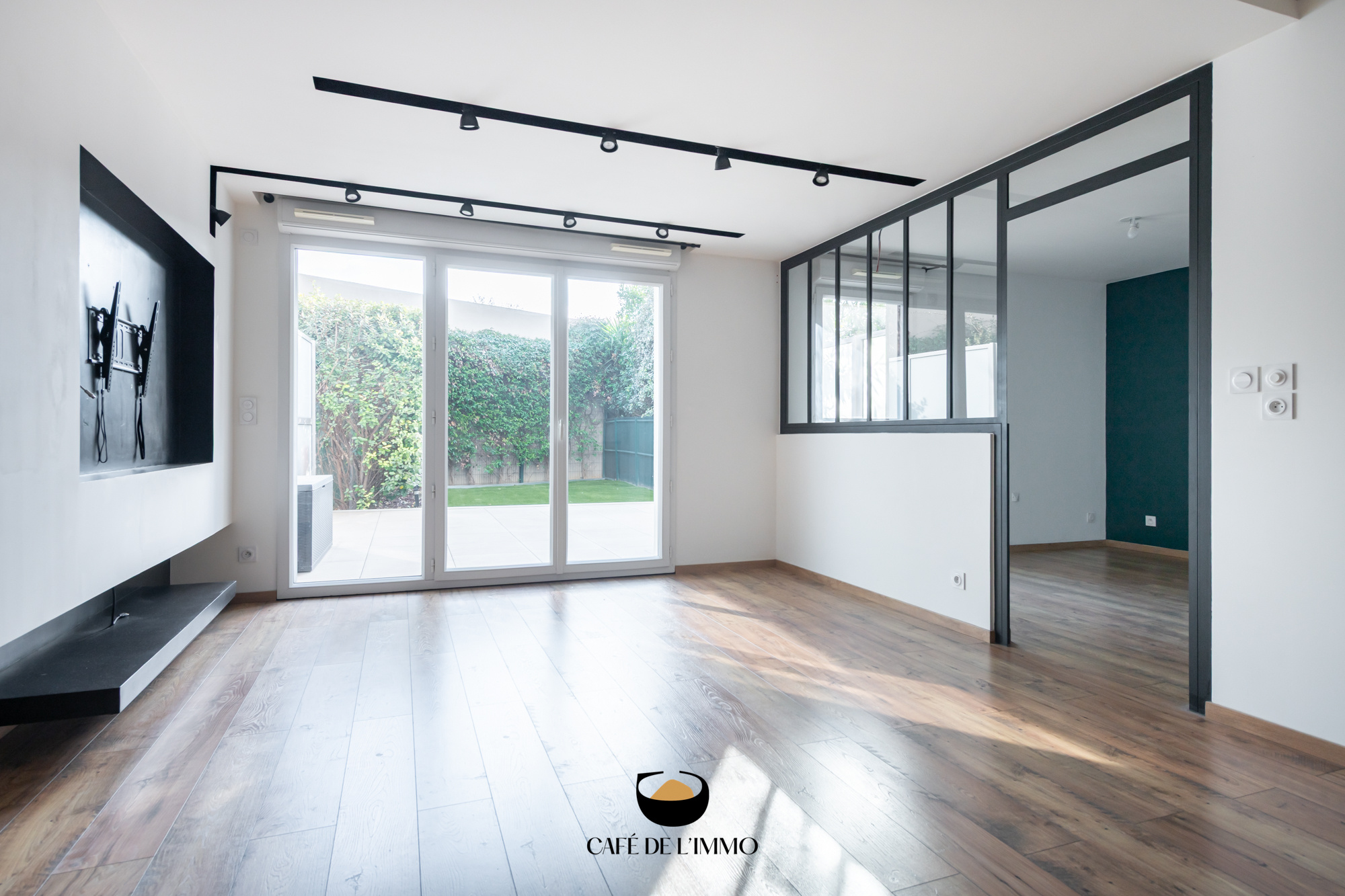 De larges baies vitrées prolongent le séjour vers une terrasse carrelée de 25 m2 et un jardin privatif arboré de 35 m2, véritable prolongement de l’espace intérieur, idéal pour profiter pleinement des beaux jours.
