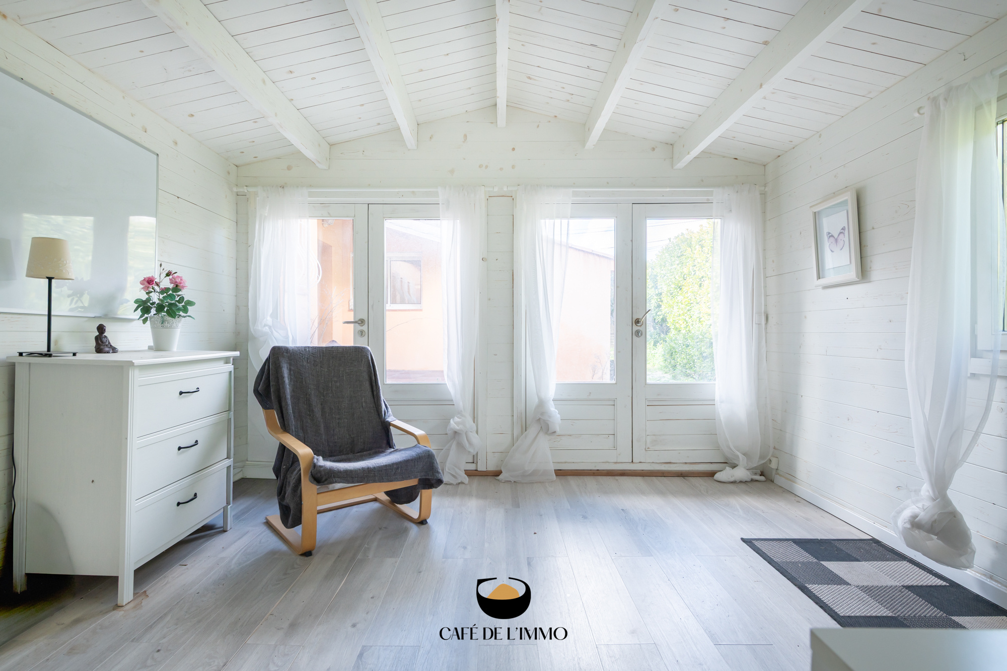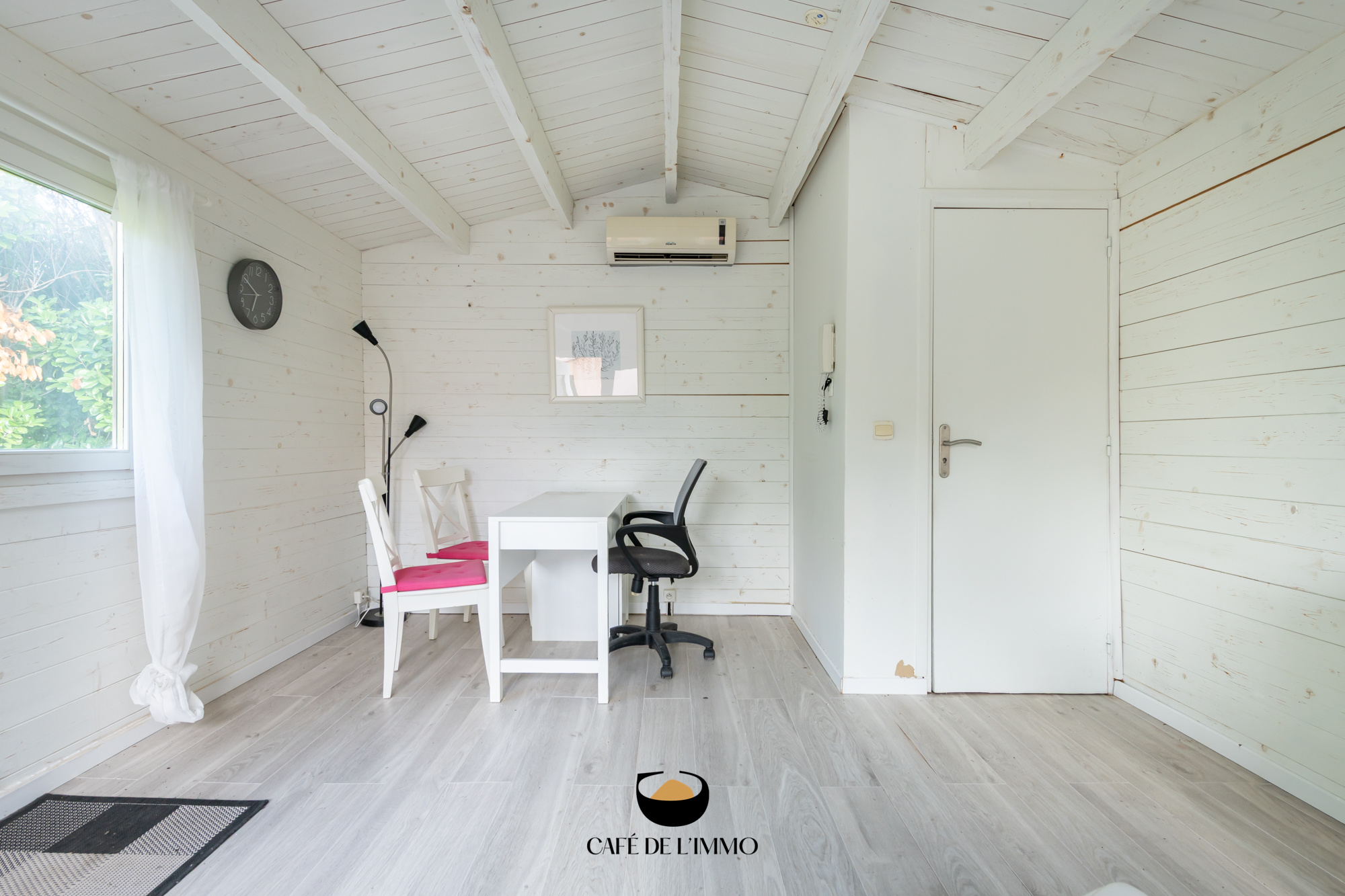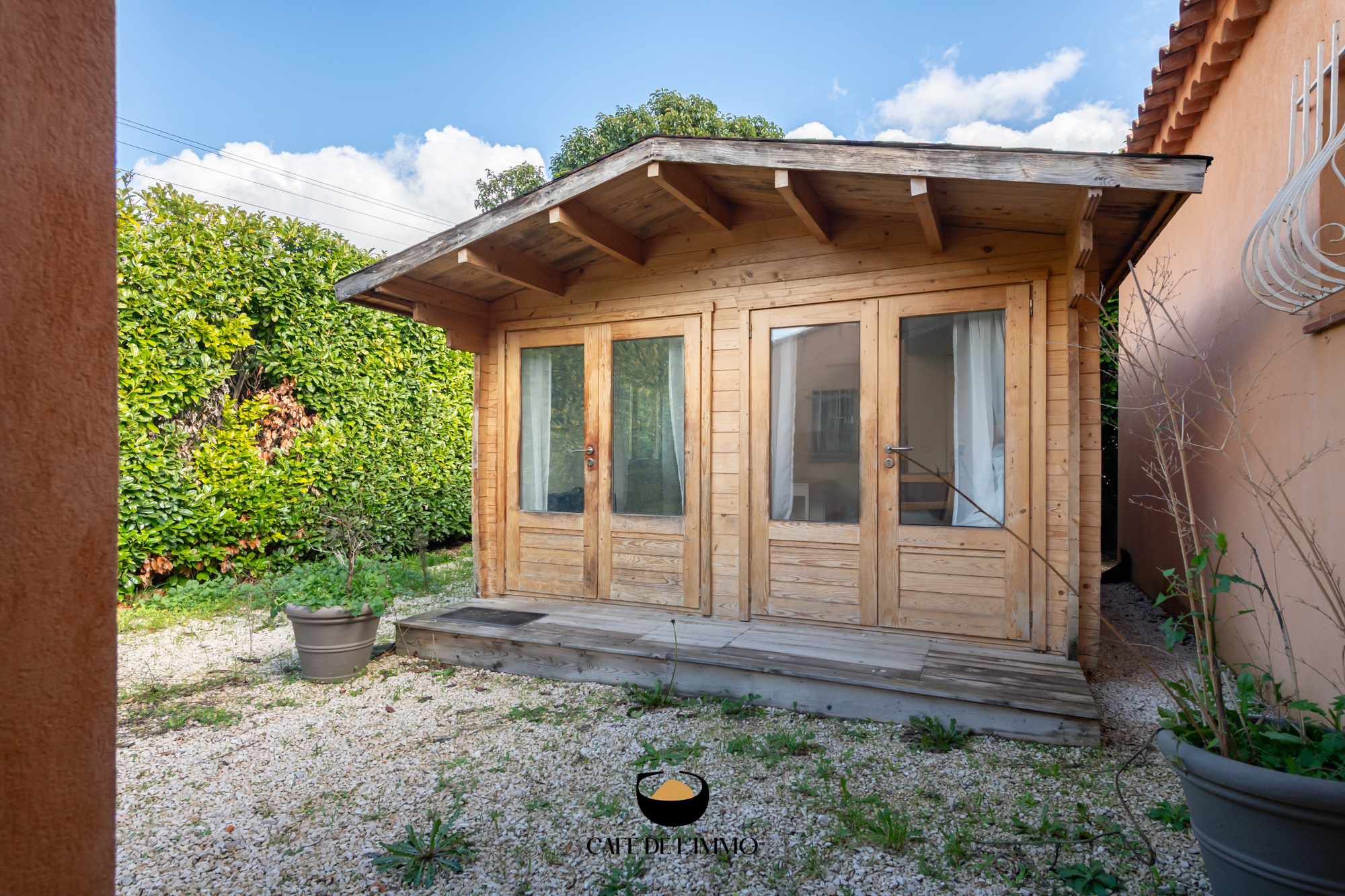 Sur la parcelle, un chalet en bois indépendant, offre une belle possibilité d’espace annexe : bureau, atelier ou chambre d’amis, à vous d’imaginer.