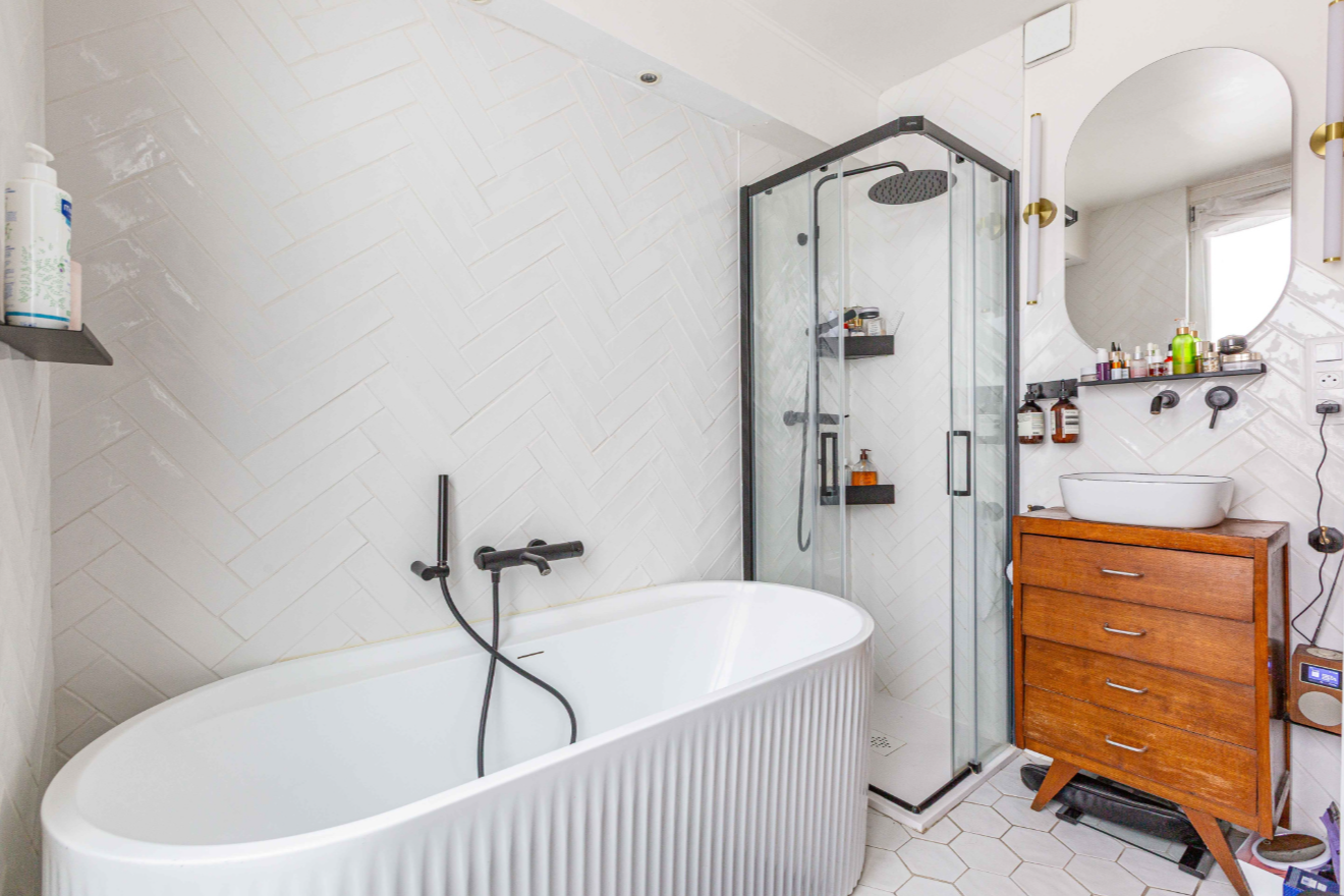 Rives Sainte Catherine vous propose de découvrir cet appartement atypique en duplex, idéalement situé au coeur du Village Saint-Paul et à deux pas de la Place du Marché Sainte-Catherine. Refait à neuf dans un cadre privilégié, ce bien de 72,37 m2 (Loi Carrez) pour une surface totale de 105,76 m2 occupe les 2ème et 3ème (dernier) étages d'un immeuble ancien. Le premier niveau se compose d'une entrée, d'un séjour lumineux exposé ouest avec quatre fenêtres, d'une salle à manger et d'une cuisine ouverte aménagée et équipée. Vous y trouverez également une chambre avec salle d'eau, un espace de rangement et des WC séparés.